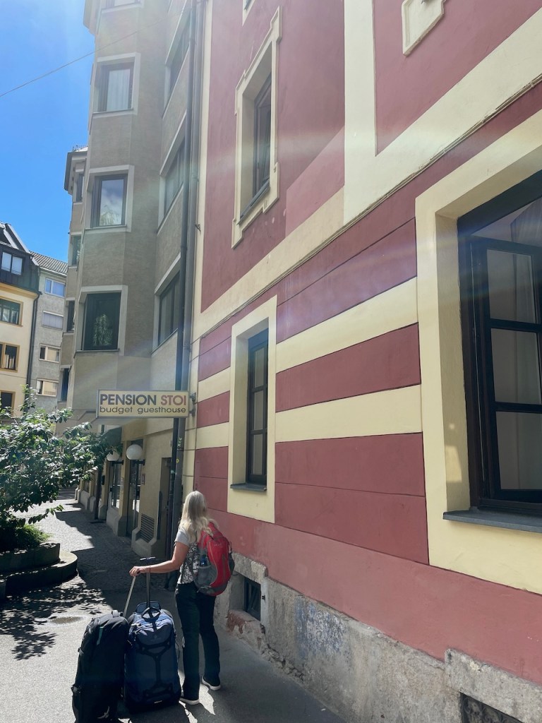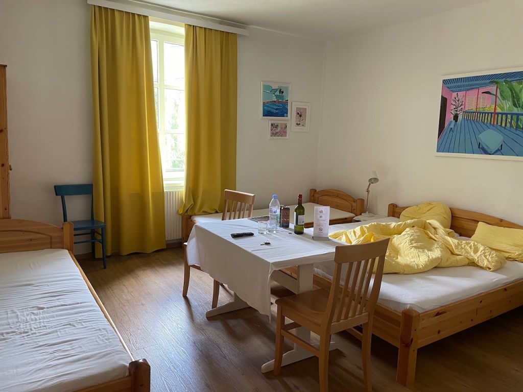 Our lodging for the next two nights was Pension Stoi Budget Guesthouse, located a short walk from the Hauptbahnhof (train station).  A relative bargain at 101-Euros ($112) a night in such a central location, except for having to haul our bags up a couple of flights of stairs, we were pleased with our large airy room and the modern bathroom.  Not quite a hotel, a pensione is often a family home with many rooms, or one floor of a large building.  In many places they are a bargain and usually clean and accommodating.  I grabbed a couple of beers from a refrigerator in the lobby (3-euros apiece) and we relaxed a bit before making plans for dinner.