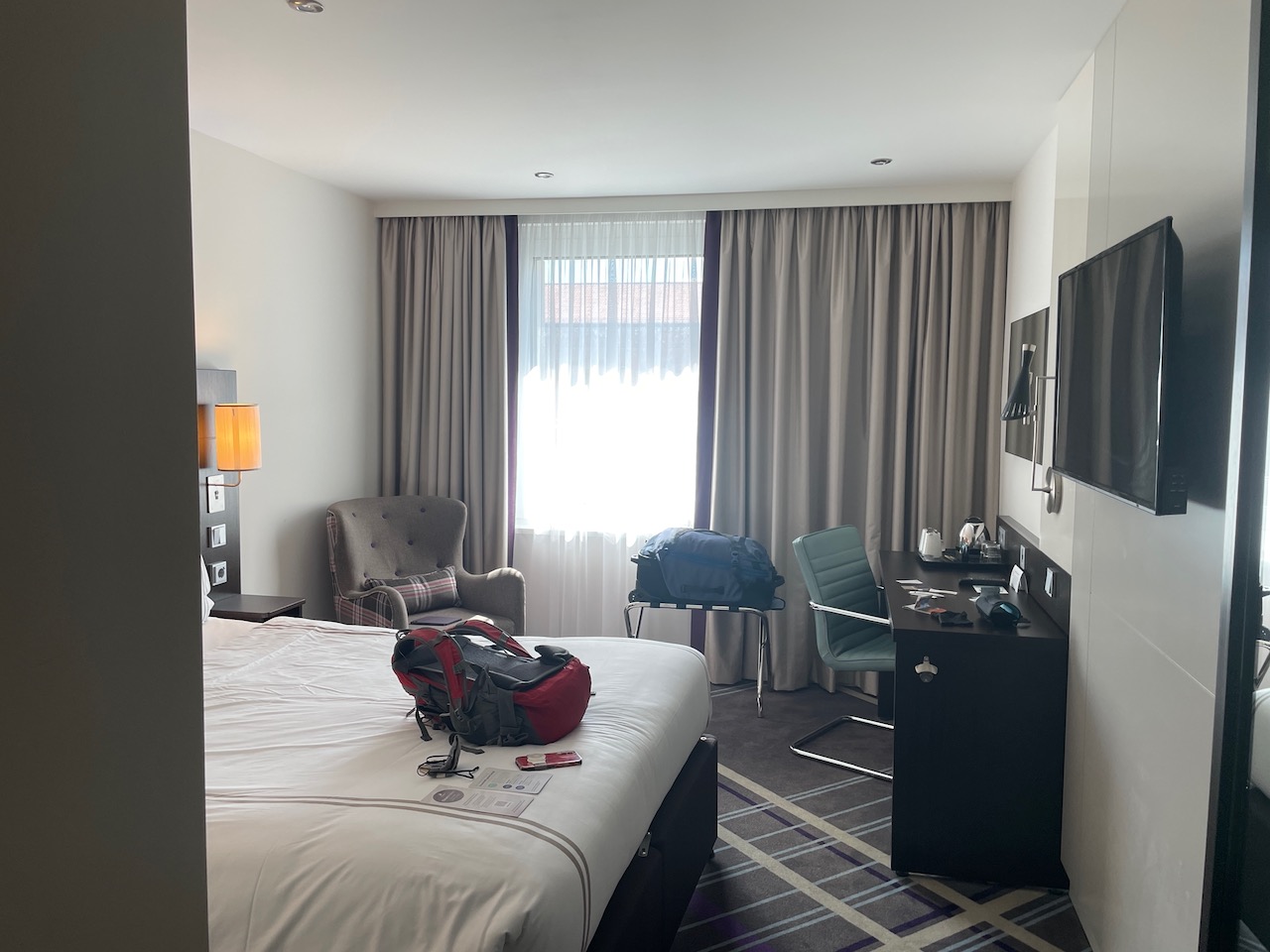 The Premier would be a very good choice at 100-Euro’s a night, with its nicely appointed room, modern bathroom, and cool bar downstairs, where we got a credit for two free drinks our first two nights as we opted not to have daily room service. And we would take them up on that offer that first night, enjoying a beer for me and an Aperol Spritz for Joanna (for a slight additional charge).