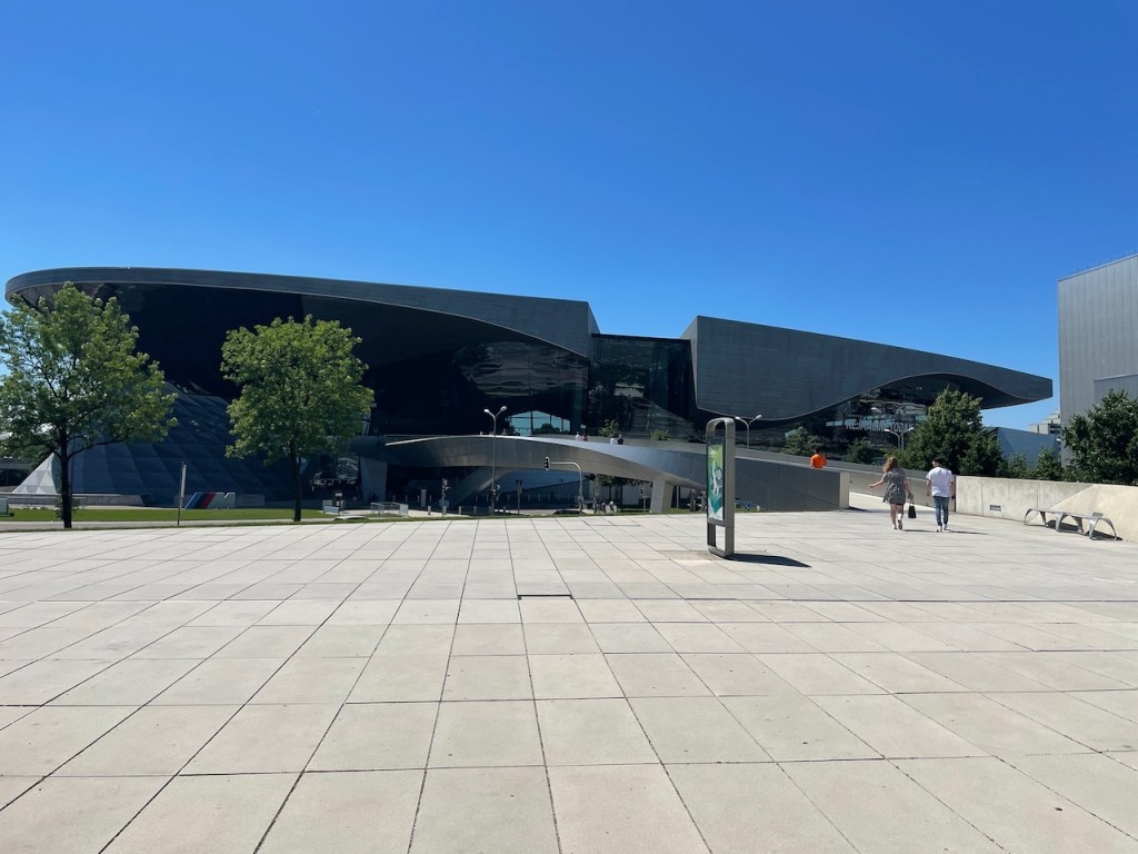 We then walked across the street to the BMW Welt, a combined exhibition, delivery, adventure museum, and event venue. It was built from August 2003 to summer 2007 with a solar system providing 800 kW of power installed on the roof of the main building. Hard to believe, but the Welt is the most visited tourist attraction in Bavaria.
