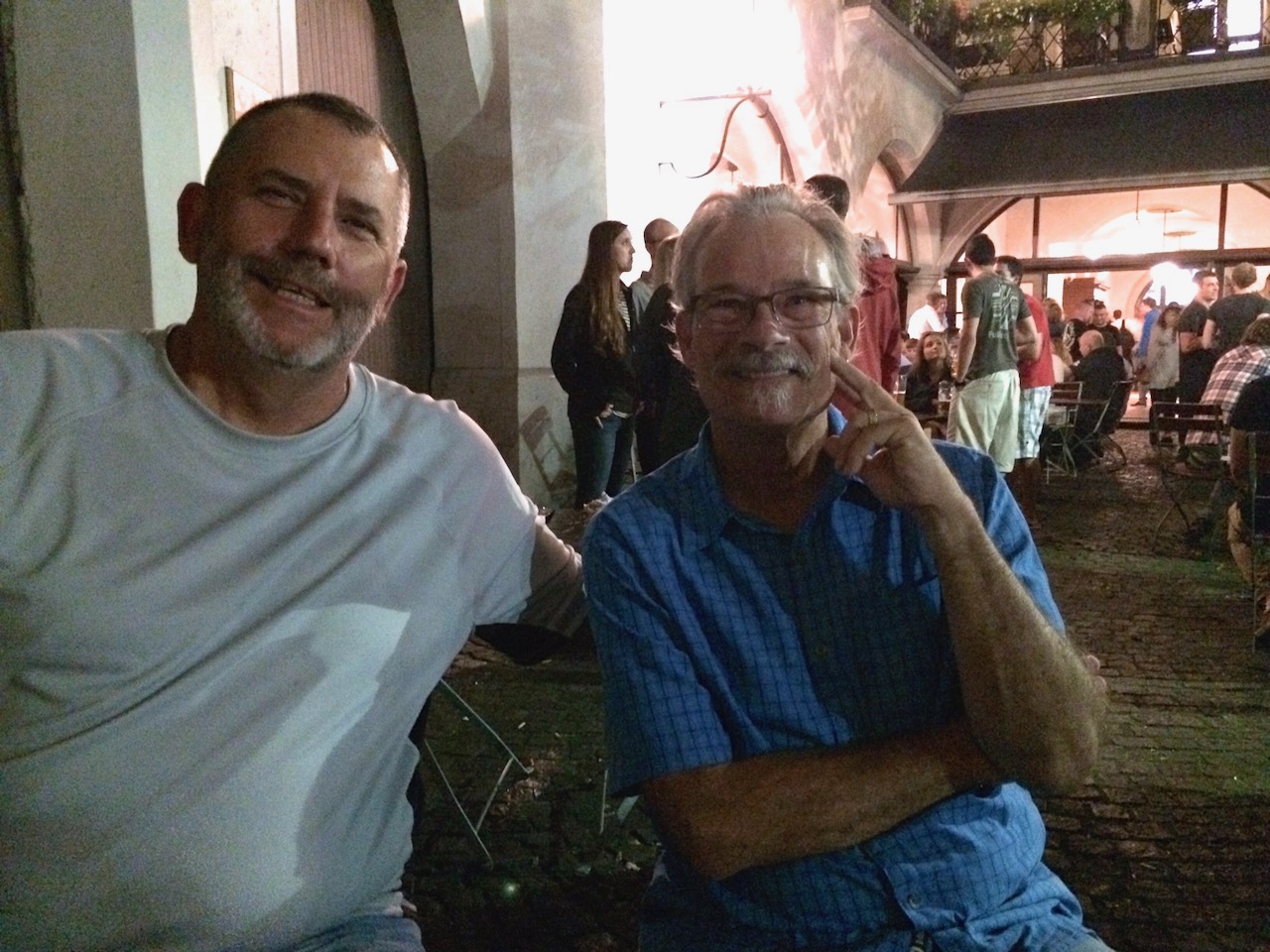 To finish, we celebrated with a dessert we search for anytime we hit Germany, one we first encountered in 2002 with Ric and Irene, at the end of the 16 mile day of hiking on the Ludwig’s Way when we got lost but ended up finding lodging with a local who, after we had relaxed and cleaned up at their house, took us to the neighborhood gausthaus where we had a good and filling meal, a few beers, and then the dessert. Take think slices of apple, coat them with a spiced flour mix and then deep fry them and when piping hot, serve them with ice cream. If memory serves me correctly, perhaps there was some caramel sauce involved as well.