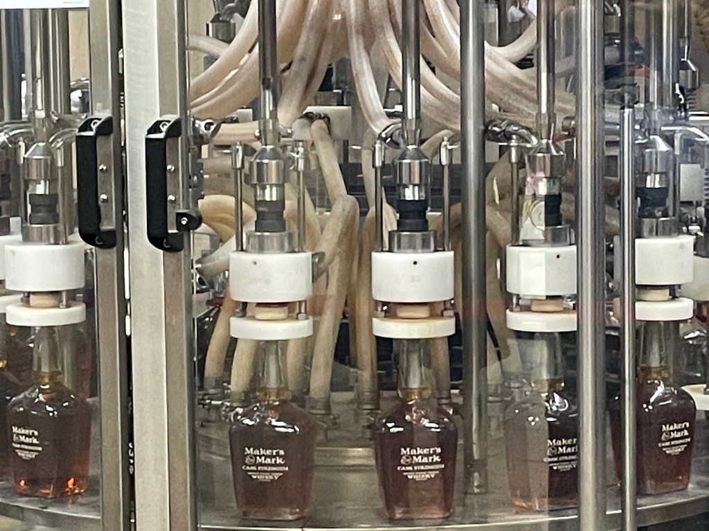 As we neared the end of the tour, we stopped for an explanation about the production of my favorite Maker’s product, it’s 46. As explained by them, “The innovative wood-stave-finishing process starts with fully matured Maker’s Mark at cask strength. We then insert 10 seared virgin French oak staves into the barrel and finish it for nine weeks in our limestone cellar. The result is Maker’s Mark 46: bolder and more complex, but without the bitterness typical of longer-aged whiskies.” The number 46 refers to the number of attempts they made to achieve the taste they preferred, that is this is the 46th version.