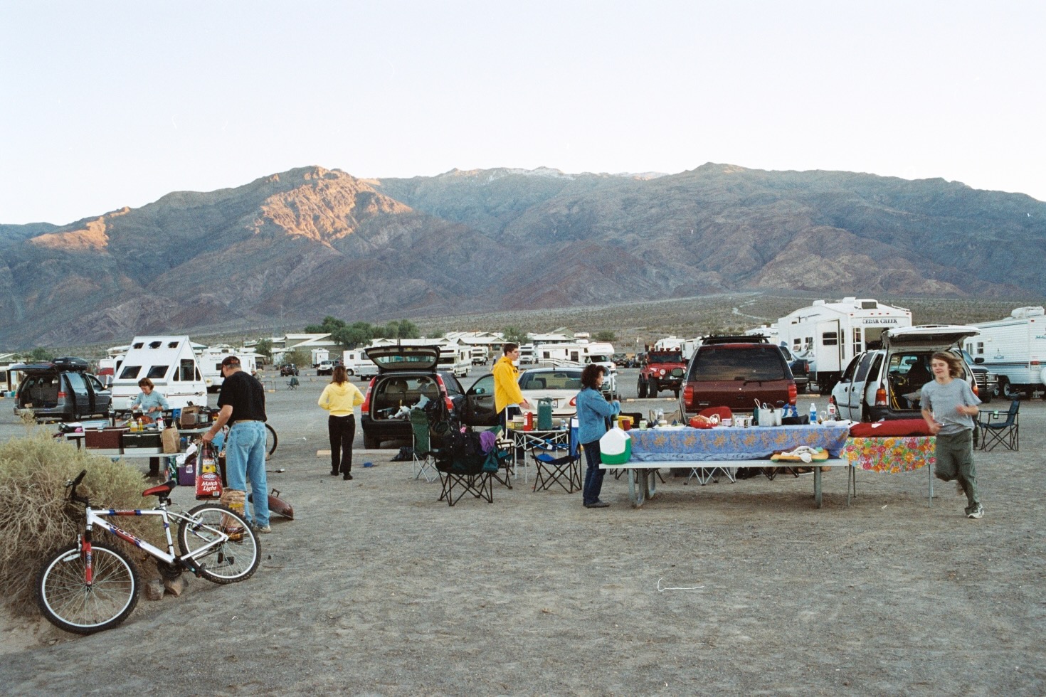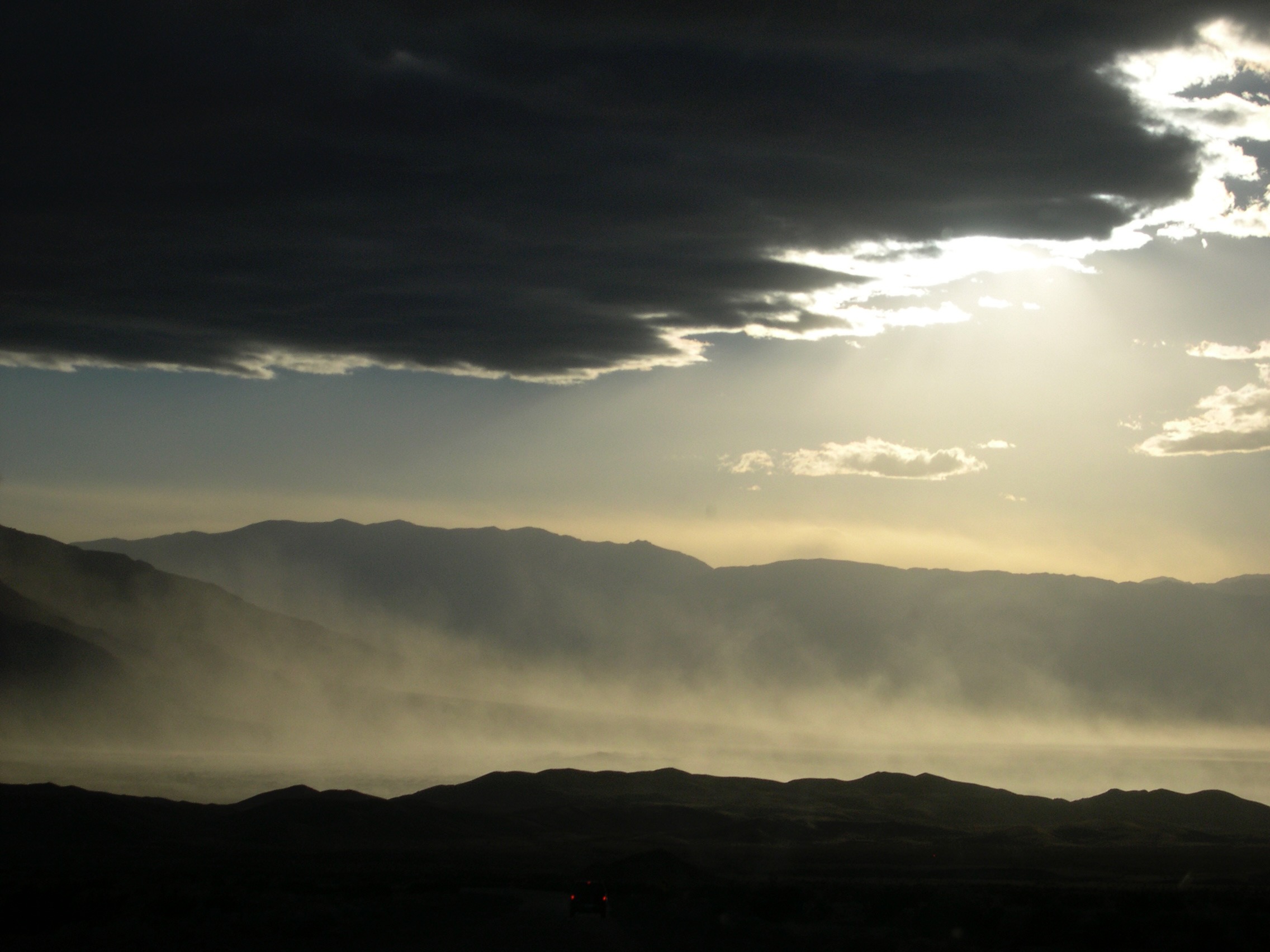 We weren’t entirely successful at this as a lantern, bike helmets and other miscellaneous gear broke when hitting the ground and as a result of having the car’s tailgate open while we threw stuff inside, we would still be cleaning sand out of it months later. As we descended into the valley from Beatty, we observed the same ominous storm system forming to the north and sped up the cars so we could get back to camp to prepare for the wind and sand. Our outcome was much better this time around.