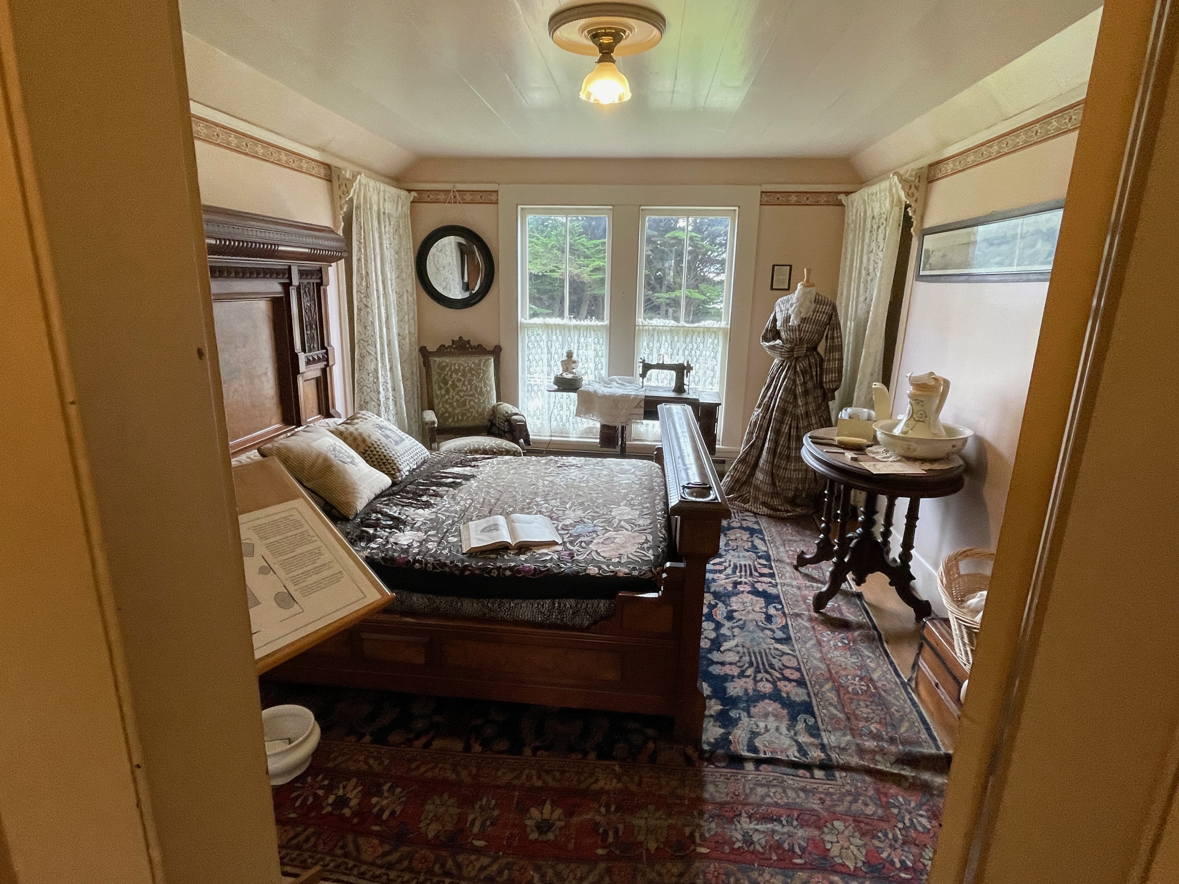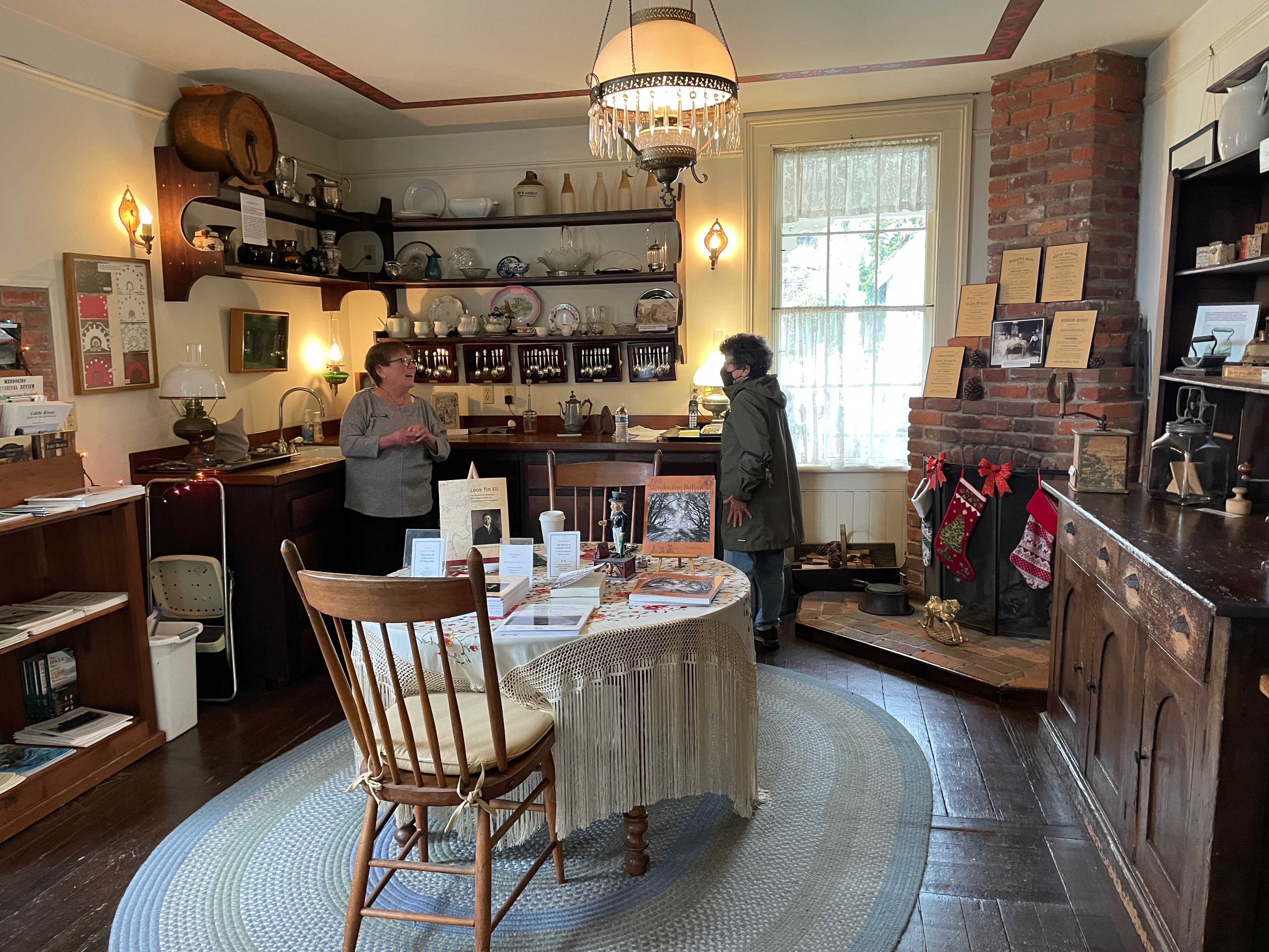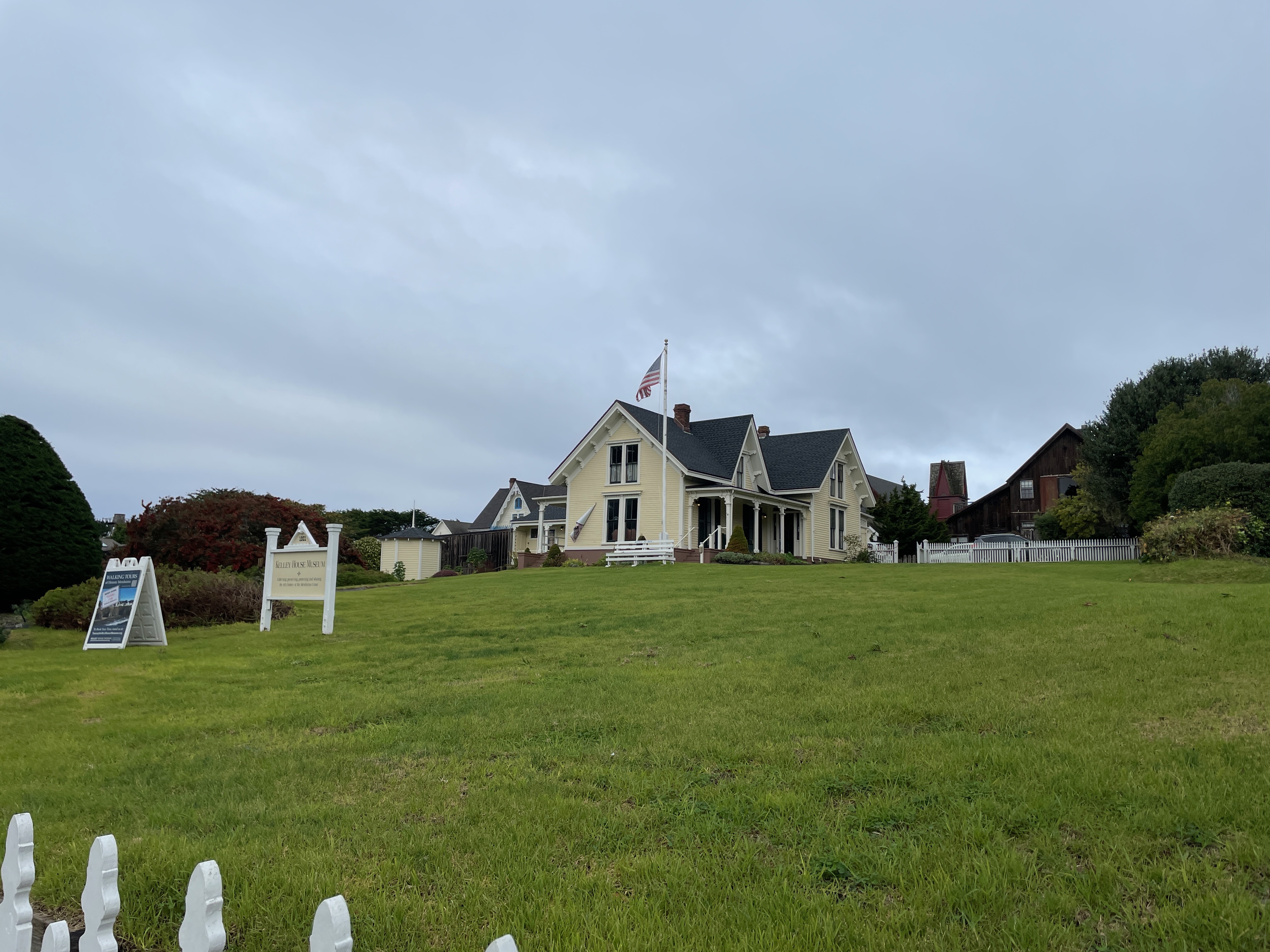 After parking on a side street, we walked down to Main Street at the southern end of town, which sits at the edge of the cliff side overlooking Mendocino Bay. There, we noticed the Kelley House Museum and decided to check it out.