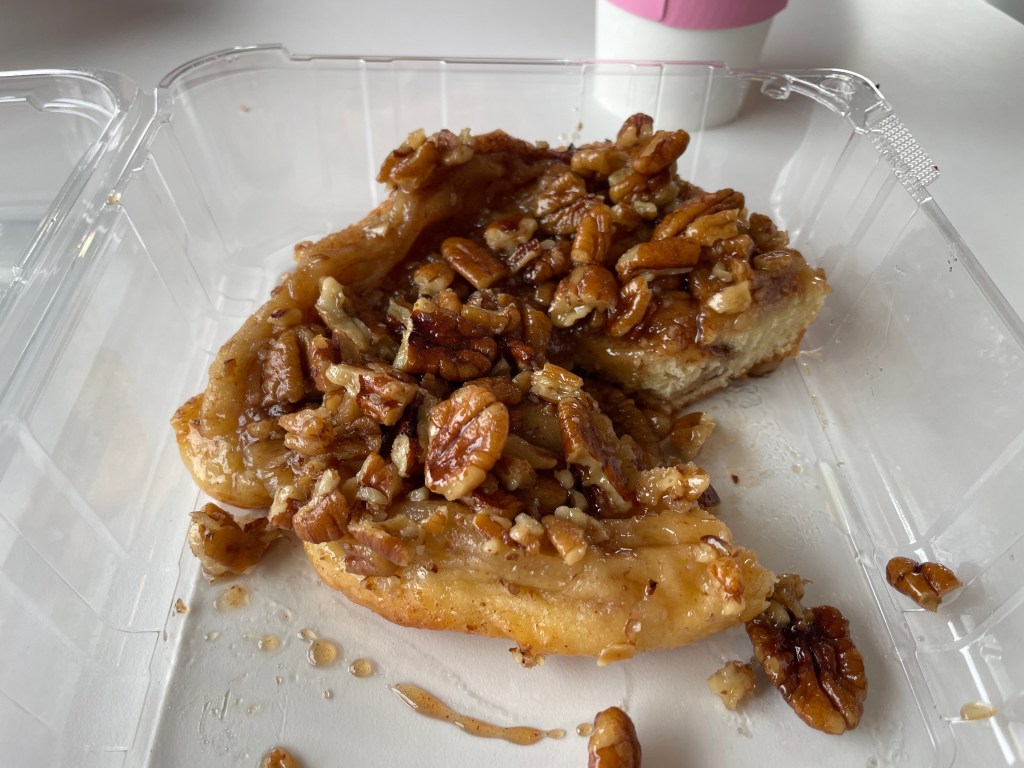 This would end our time with Ann and Rendy, and we took off the next morning to head southwest to Lincolnton for a night with Joanna’s middle sister Debi. On the way out of town we followed up on Ann’s suggestion to check out Sweet Dough Bake Shop on the outskirts of High Point. And were we glad we did. Faced with multiple cases of delectable looking baked goods, we settled on delicious and sizable Pecan Sticky Bun, which along with a good cup of coffee would hold us for the rest of the afternoon.