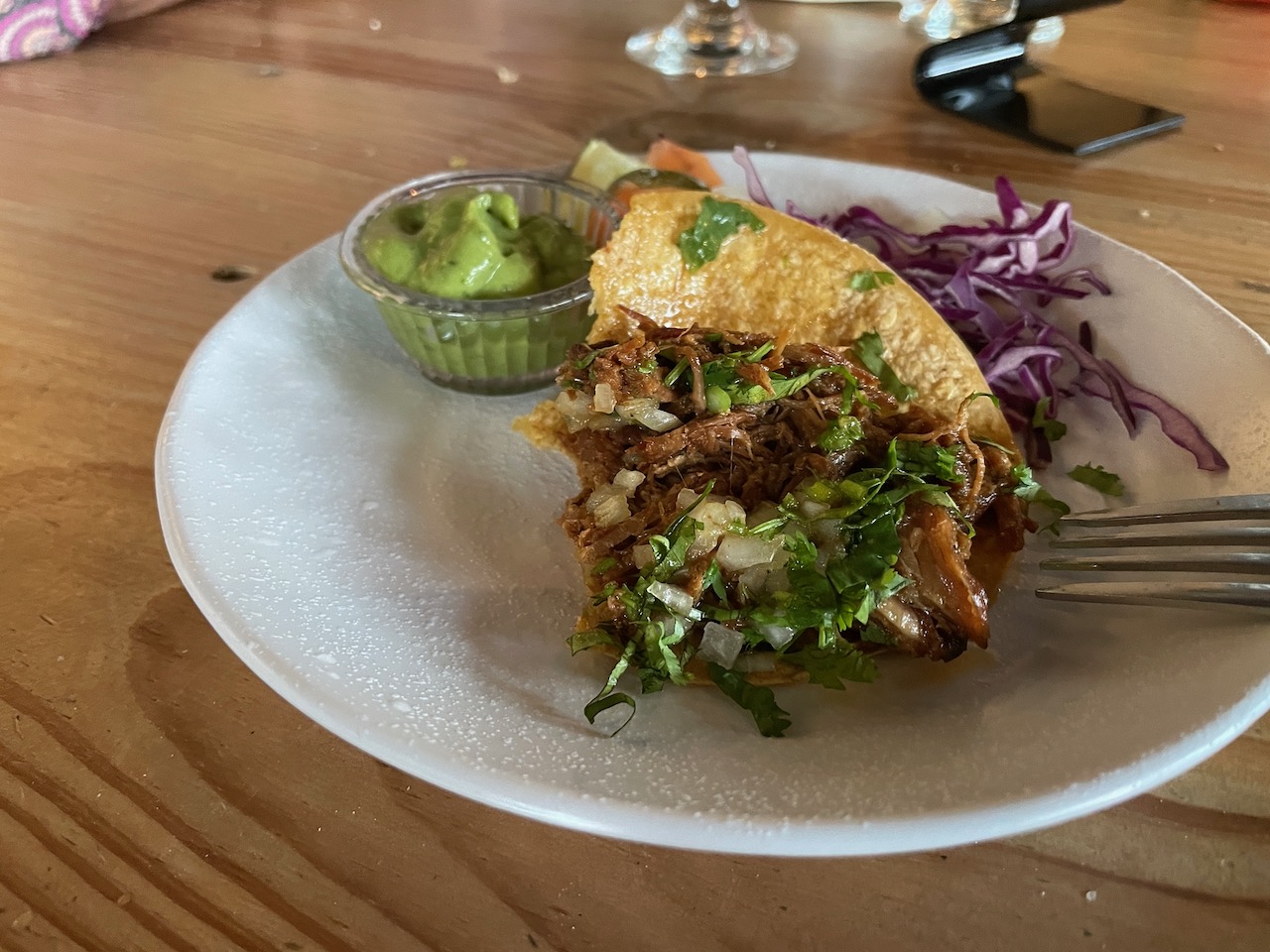 Ready for a last bit of food, we ordered a second round of beers, a Chimay Premier Red for me and a Veil Brewing Company Lord Whangdoodle Imperial Chocolate Milk Stout for Joanna, a perfect accompaniment to the Carnitas taco we finished our meal with. It was a very fine experience, running us $70 and one we’d repeat often if we lived nearby and it sent us back to our room in a happy place, ready for a full day of being tourists tomorrow.