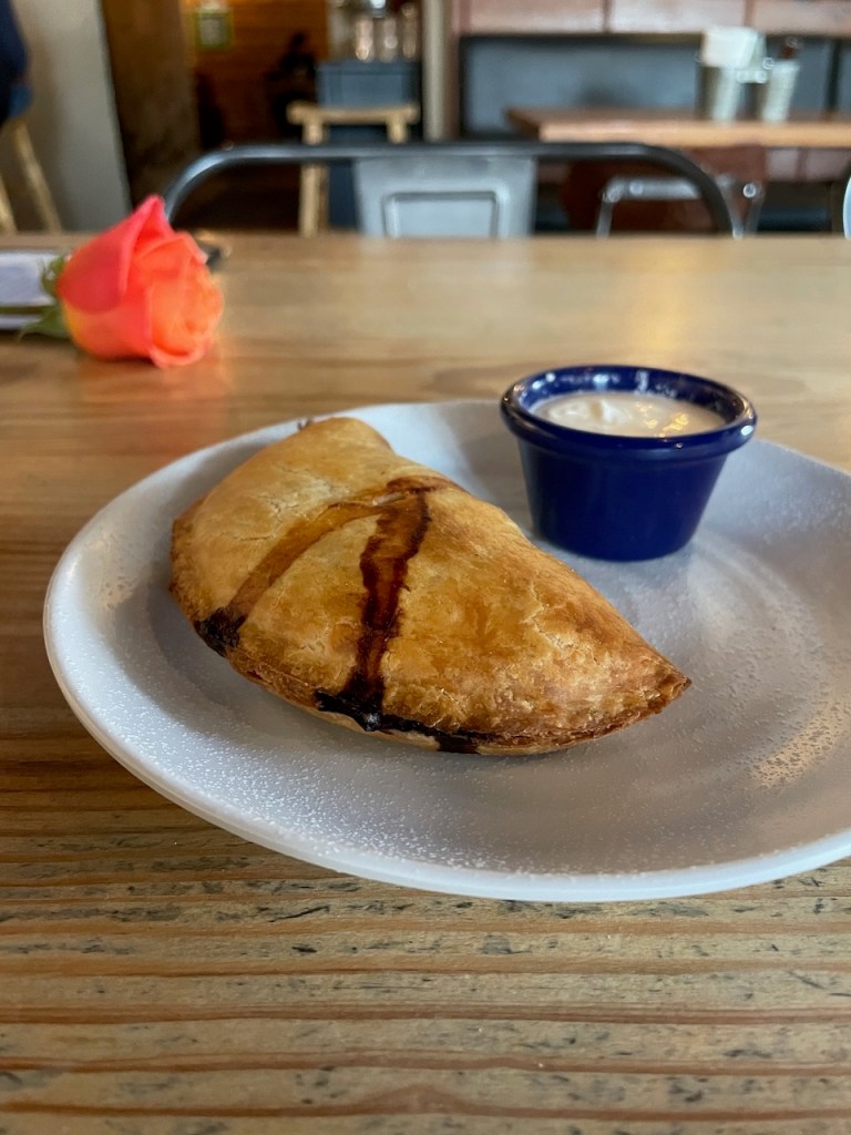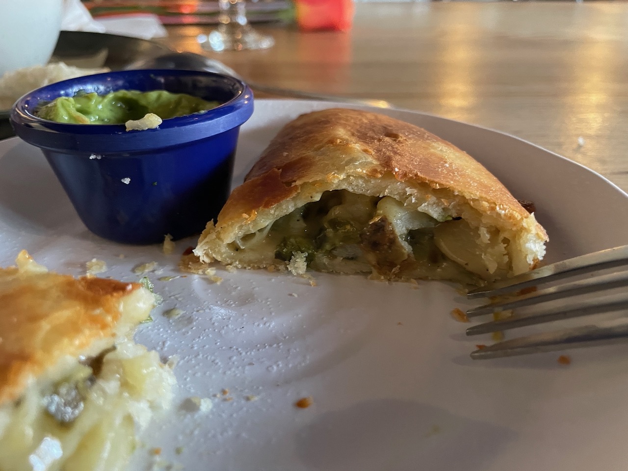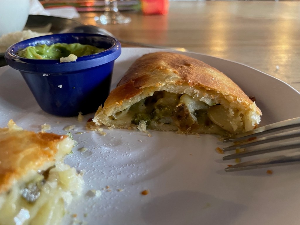 Billed as a Tapas style establishment, we followed that path and started out with a bowl of very good clam chowder, full of clams and not to starchy, with just the right number of vegetables to give it some dimension. Next up was a couple of empanadas, the first a shredded Chicken tinga-style with crema followed by a Veggie with poblano Chile, potato, queso Oaxaca, and guacasalsa.