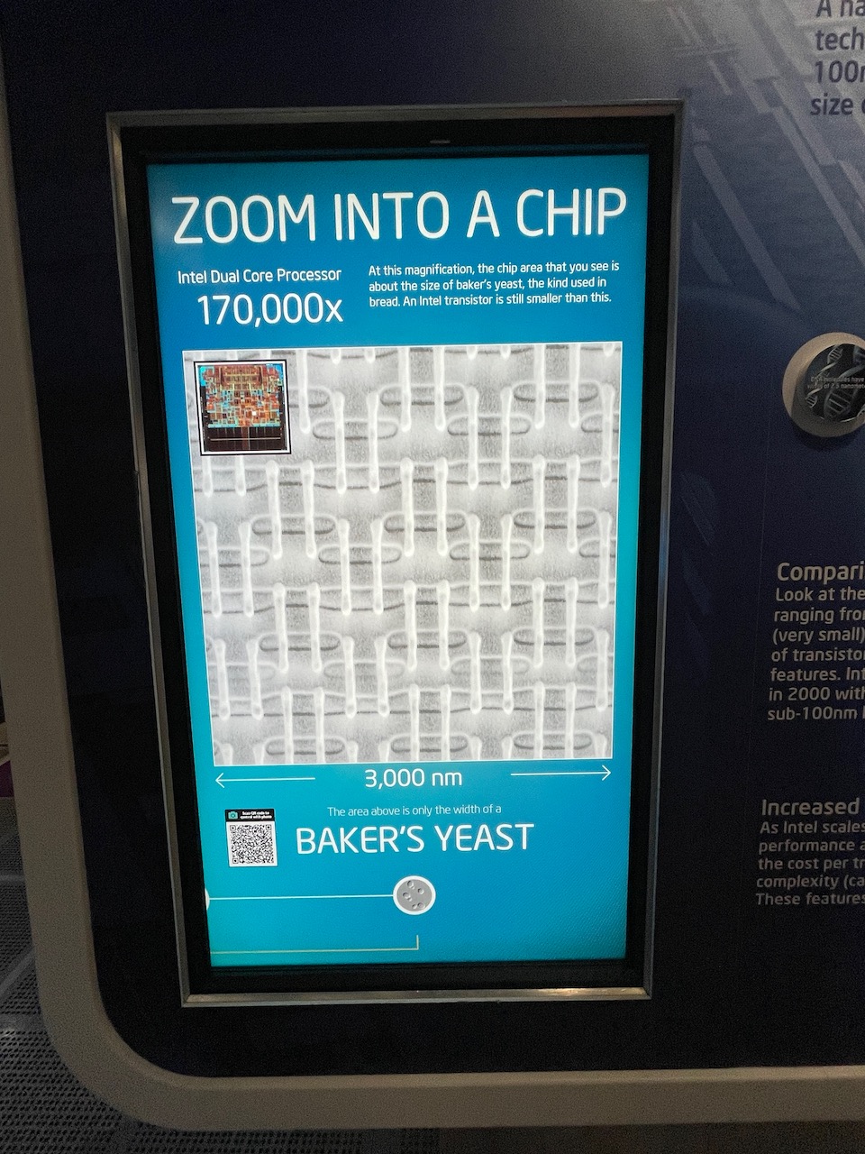 On Monday Joanna and I took off for three nights in Santa Cruz, a town we’ve not been to since we did a college tour with Jessica when she was in high school. With some time on our hands we made a detour to Santa Clara to take in the Intel Museum there. Located at Intel’s headquarters, it has exhibits of Intel’s products and history as well as semiconductor technology in general and is free to the public to visit.