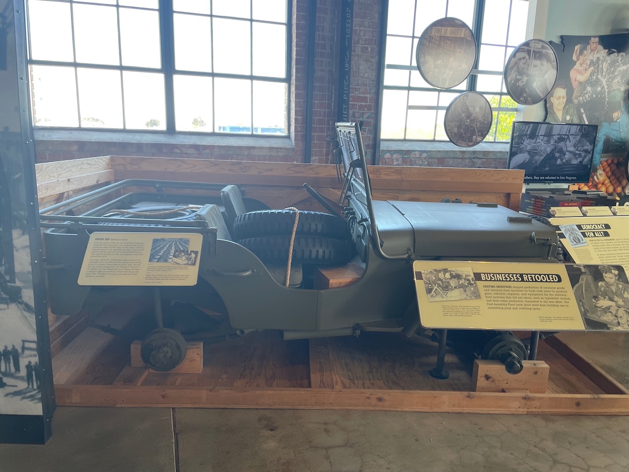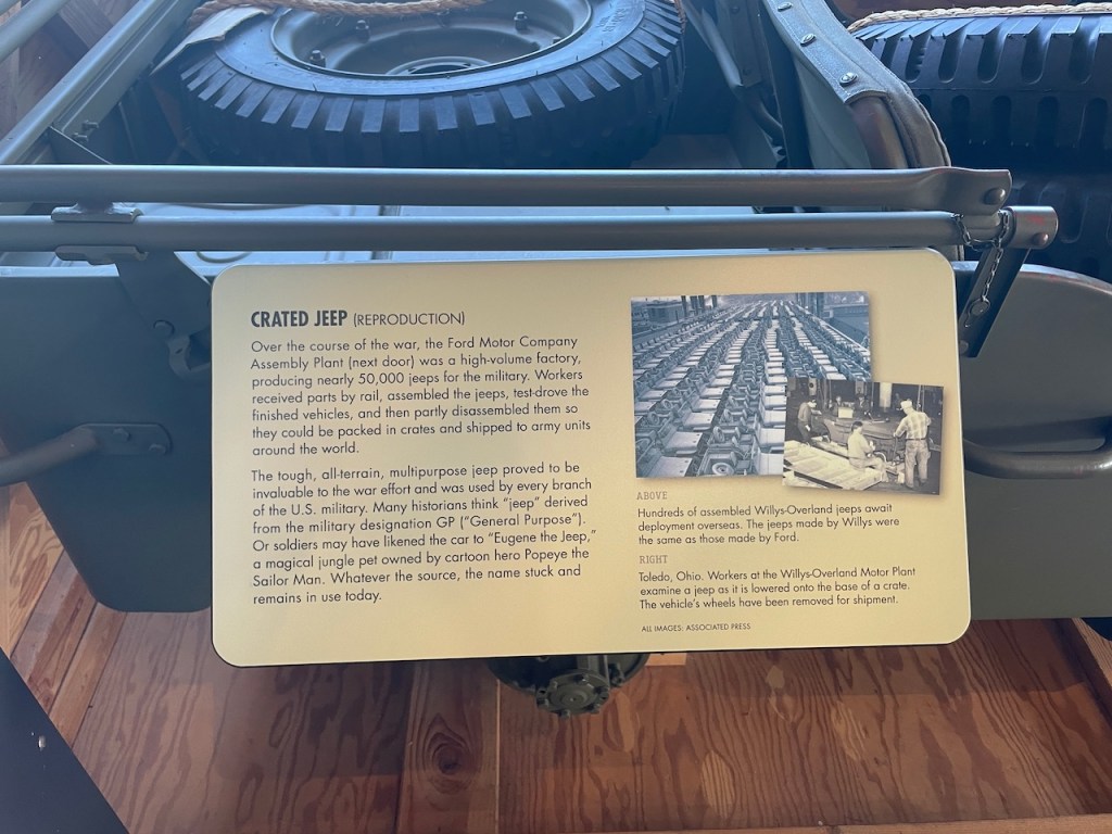 The museum portion of the park occupies a small part of the larger complex that was the Ford Motor Company Assembly Plant. It was the largest assembly plant to be built on the West Coast and one of only three tank depots in the entire country. Approximately 49,000 jeeps were assembled, and 91,000 other military vehicles were processed here. Ford employed thousands of workers at the site during World War II, many of them women who were entering the work force for the first time and “Rosie the Riveter” was a period song representing these women.