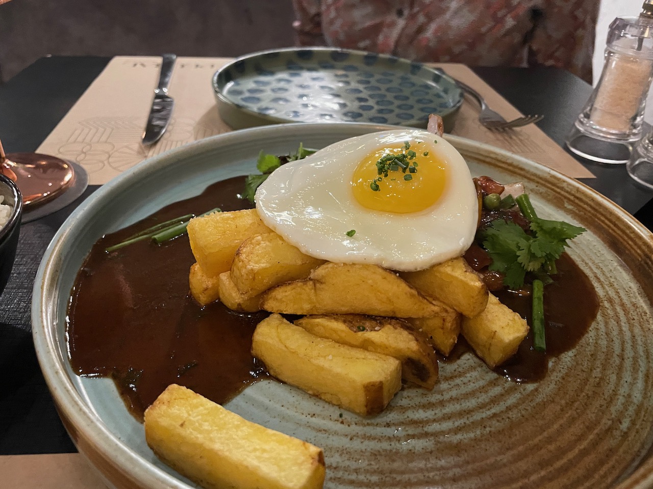 Both were excellent. For food we split a bowl of Crema de Zapallo (cream of Pumpkin) soup before enjoying our entrees. For Joanna this was the Tiradito (Tiradito is a Peruvian dish of raw fish, cut in the shape of sashimi, and of aspect similar to crudo, and carpaccio, in a spicy sauce) comprised of Scallops, Catch of the day, Yellow chili cream, leche de tigre, grilled sweet potato, chalaca, cilantro, and grilled corn) while had my first taste of what many consider the be the Peruvian national dish, that is Lomos Saltado (Smoked beef tenderloin with onions, tomato, French fries, and rice with corn). I enhanced the enjoyment of my dish with a glass of house red.