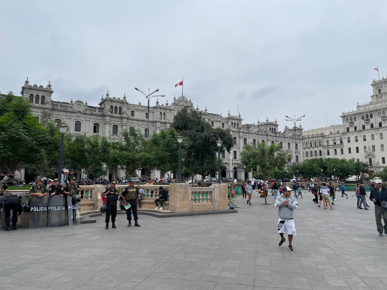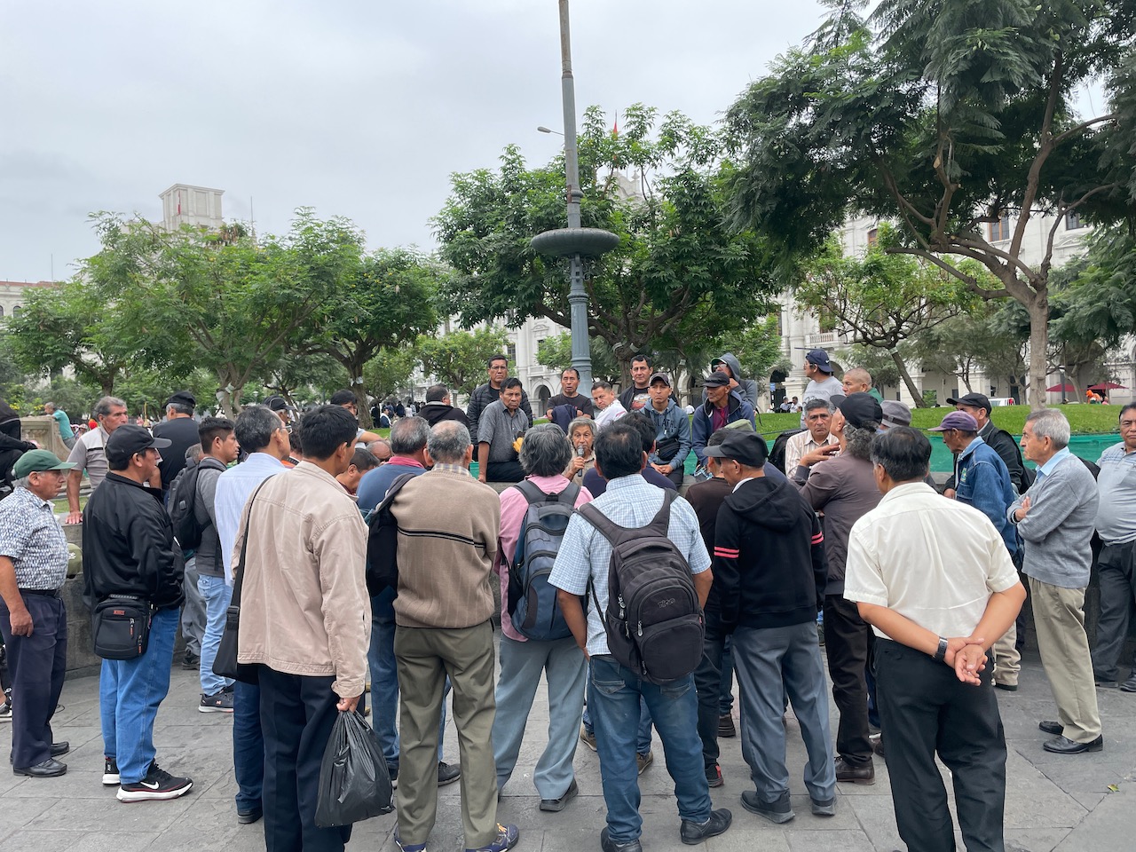 We climbed aboard and rode for fifteen minutes or so until we reached our destination near the Museo de Arte and Plaza Exposicion, where we then took off walking north up Jiron de la Union, one of the downtown’s main pedestrian shopping avenues. We soon arrived at Plaza San Martin, one of the most representative public spaces of the city and situated within the Historic Centre of Lima which was declared a World Heritage Site in 1988 by UNESCO. We paused here for a moment to take in the groups of people listening to speakers, who no doubt were weighing in against the government as the volatile political situation in the country was still brewing.