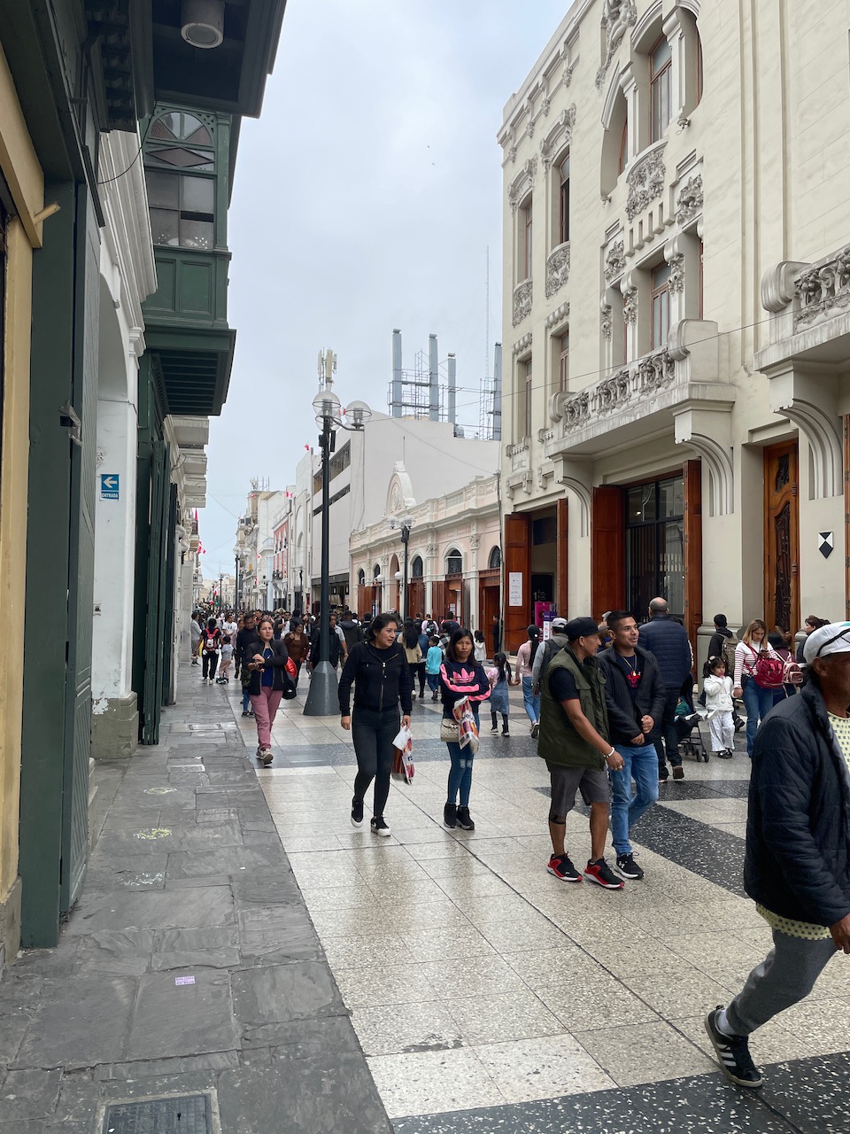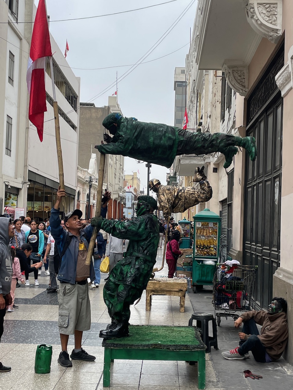 We continued walking up Jiron de la Union checking out various street performers, shop windows, and inhaling the delicious aroma of rotisserie chicken, known in Lima as pollo a las brasas and found on every street.