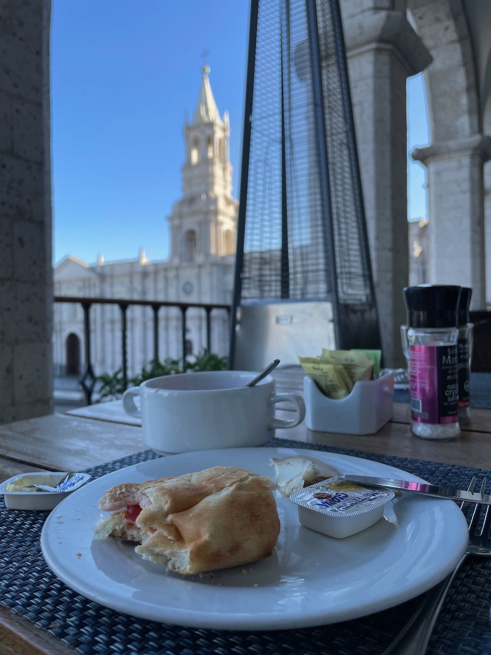 I was pretty worn out from the morning’s activities so spent the time in our room at the hotel while Joanna went to the museum and enjoyed her visit, as well as a Queso Helado, a Peruvian dessert that’s very similar to ice cream, and originates in Arequipa. It’s usually made with a combination of whole milk, evaporated milk, cinnamon, cloves, desiccated coconut, sugar, and egg yolks and Joanna reports that the texture was a little bit grainy, and the flavor was good but a little bit bland. Not a bad way to finish a long full day. Our next one would be long as well with about five hours of driving in the van, so a good night’s sleep would be next up on today’s itinerary.