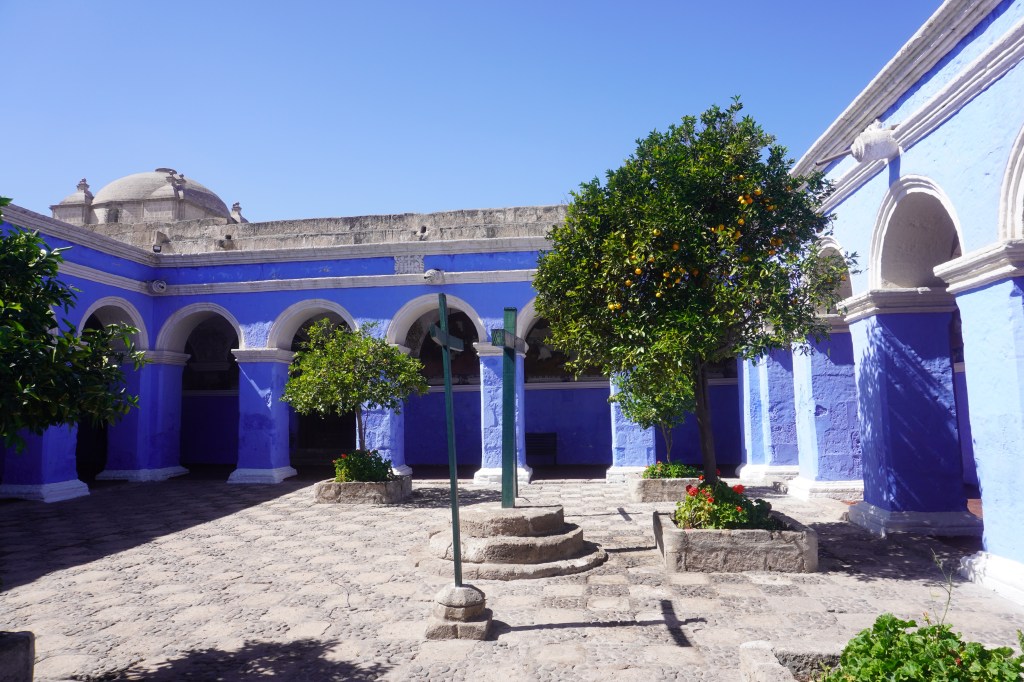 From there we walked back towards the hotel to the Cloisters of the Company where we met our local guide for the next couple of days, Juana. She walked us around the Plaza de Armas, pointing out various native and non-native plants and then led us to the first stop of the day, the Santa Catalina Monastery. A large monastery of the Dominican Second Order, and part of the UNESCO World Heritage Site “Historical Centre of the City of Arequipa”. Founded on September 10, 1579, it was built from a rock based material known as tuff., whose two types, the white tuff, which comes from the Chachani volcano, and the pink one from the Misti, the latter emblem of the city.