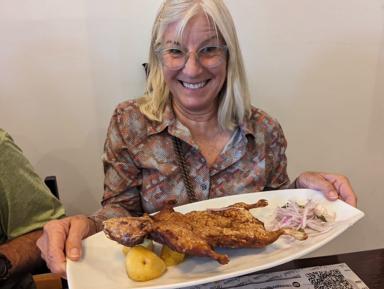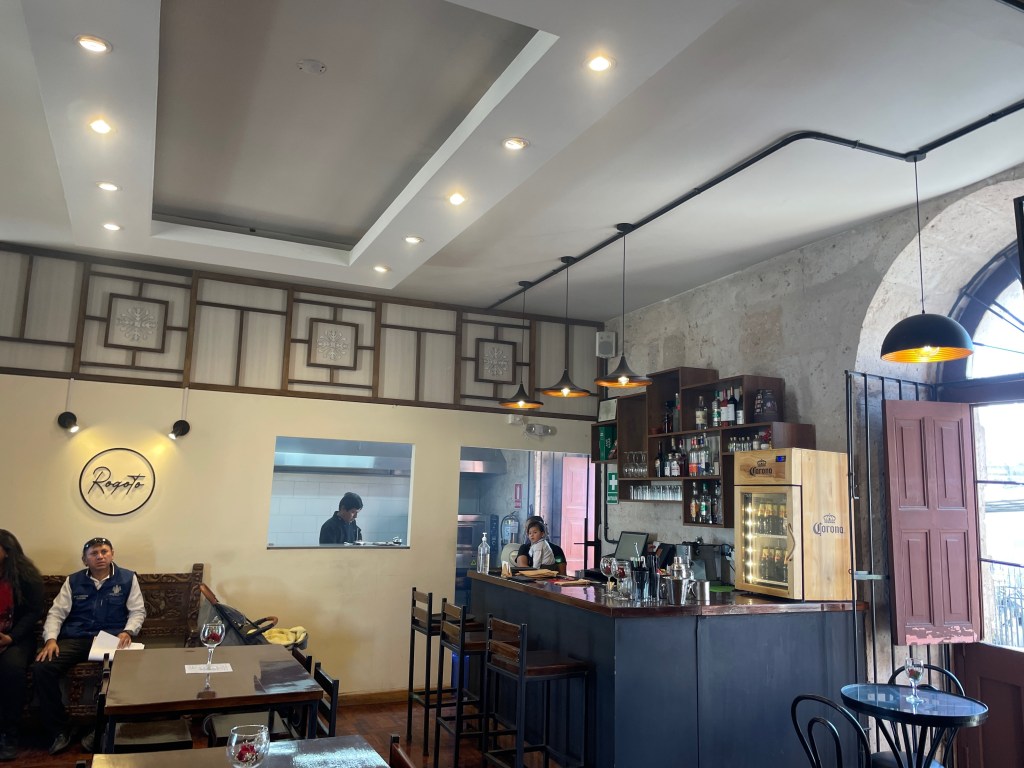 This completed our first full day of sightseeing with many steps being taken and it was time to eat. Luis has advised us a couple of times that starting the next day we would leaving Arequipa’s relatively benign altitude of 7,600 feet and would be spending days in the higher elevations of the Andes. It would be best to not eat a heavy meal late in the day, for ease of digestion and thus, this lunch would be for most of us, the meal of the day.