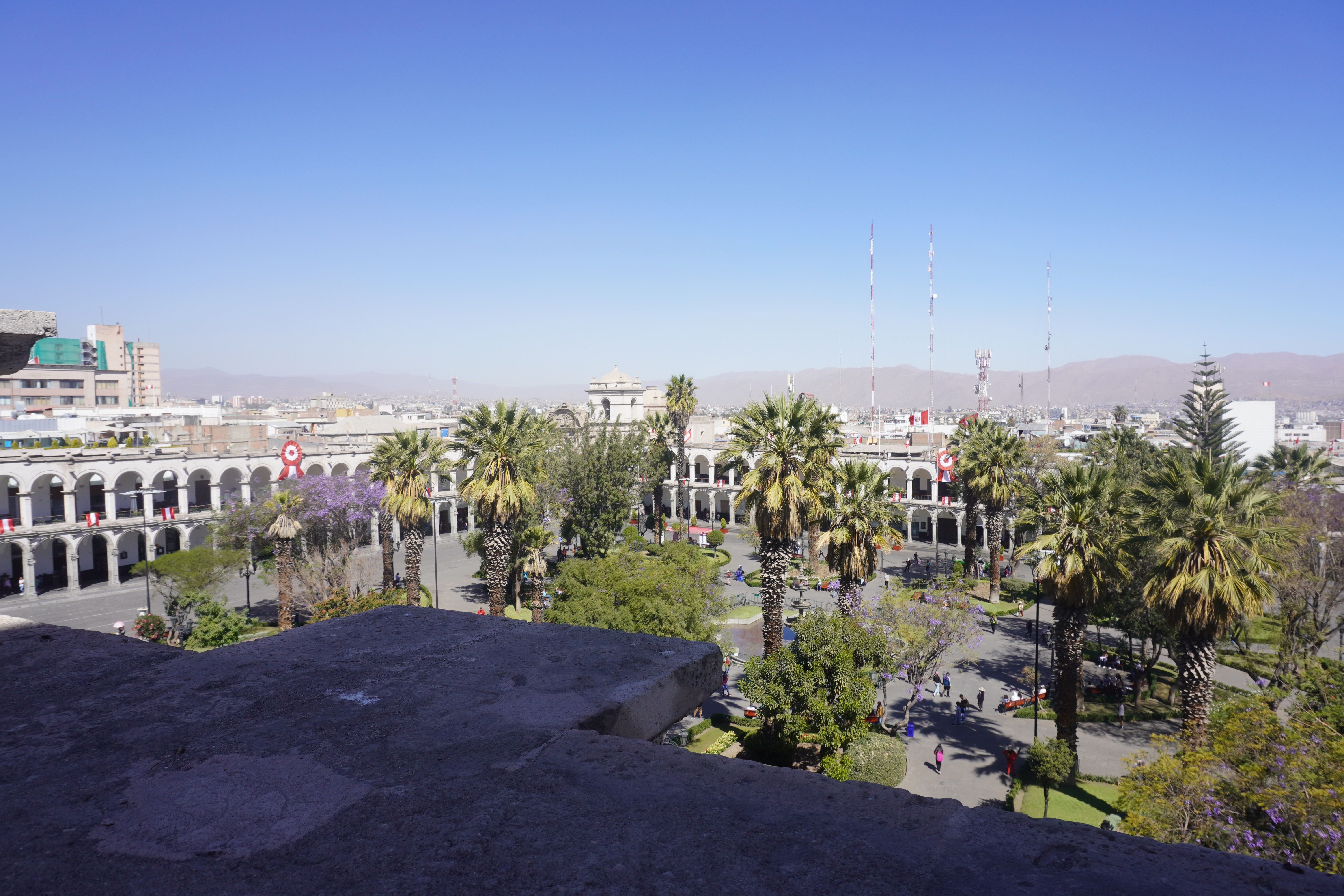 We finished inside and climbing a set of narrow stairs, emerged on the rooftop for stunning views of the city and a series of volcanic cones that dominate the city skyline, those being Misti and the extinct volcanic groups Pichu Pichu and Chachani. A heavy layer of haze, perhaps pollution marred the view, but it was still pretty breathtaking.