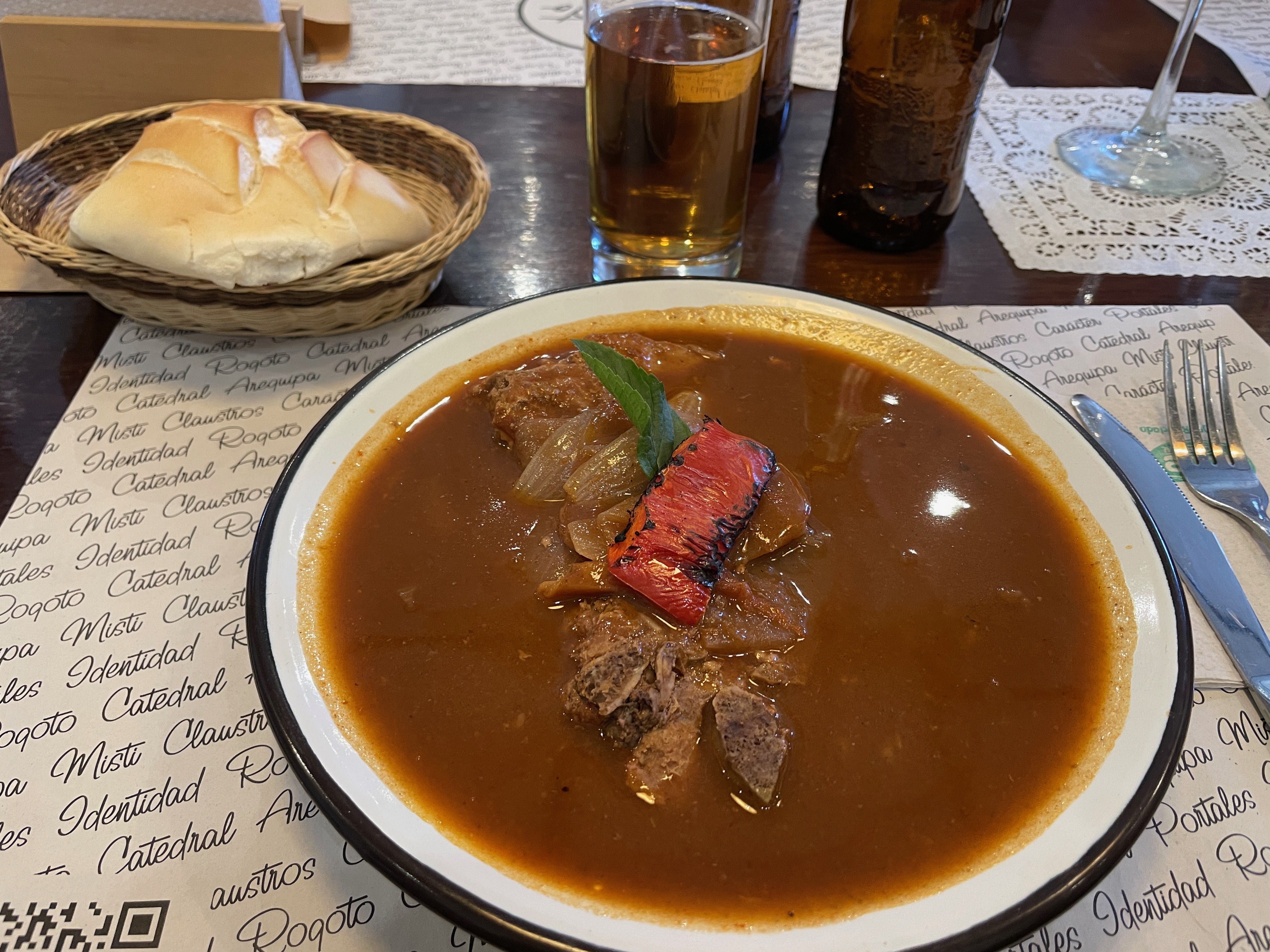 It was a very good experience, including the Guinea Pig which proved to be a challenge to eat as the meat is sparse on the bone and likely is best consumed in pieces, so that one can pick up the portion and eat it like a chicken wing. My pork stew was rich and hearty and when the meat was gone, I continued using the supplied bread to sop up the delicious sauce.