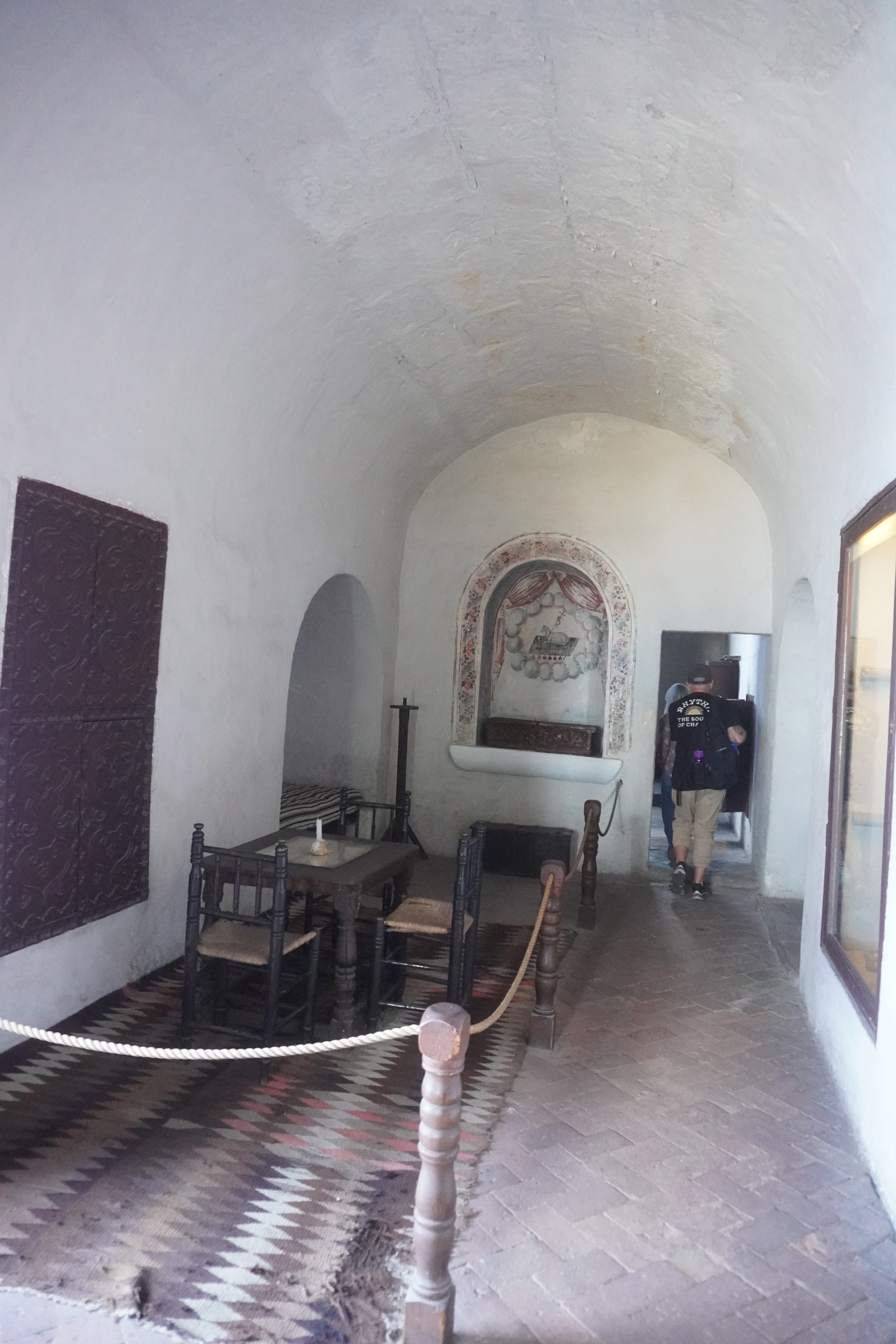 One of our last stops was the outdoor laundry, which was built in 1770 when Arequipa was supplied with water through ditches. In it are twenty half urns, which are large clay containers, that in the past were used to store grains, corn, or wine, and then served as trays. The water runs through a central channel, which was diverted to each jar by placing a stone and at the bottom of the tray as a plug, which after washing was removed and the water ran towards the underground channel that carried the waste to the river.