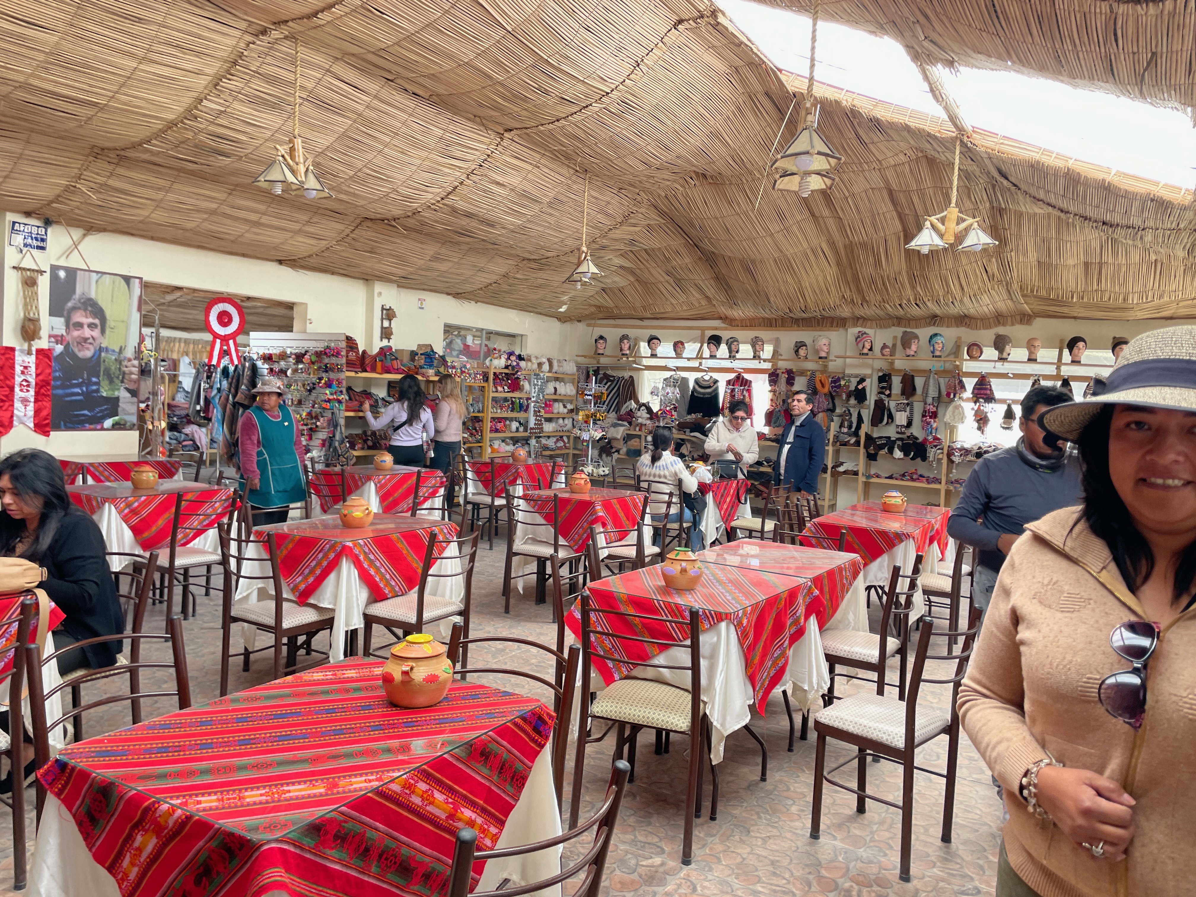Here we encountered our one and only interaction with the protests that were ongoing on in Peru, stemming from the political crisis revolving around the presidency. A square located just inside the entrance to town was blocked by the protestors and so we had to park the bus by the side of the road and walk about a quarter mile to the restaurant where we would enjoy lunch.