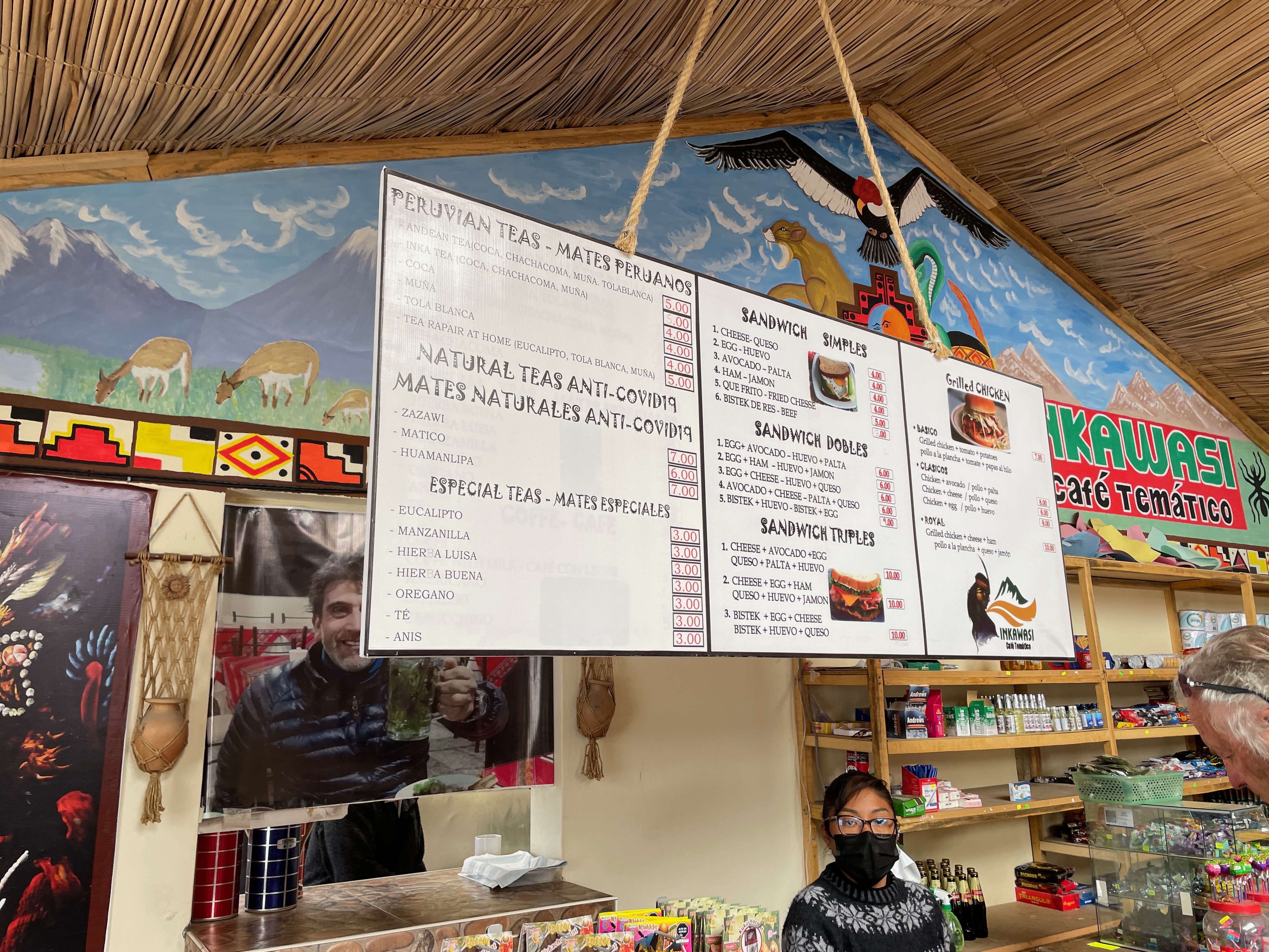 We passed out of the reserve and made a stop near Cañahuas for refreshments at Café Tematico, a combination eatery, market, and gift shop. Here we would sample and enjoy our first encounter with Inka Tea, made using the raw or dried leaves of the coca plant, along with mint and a sprig of Thyme. It was curiously refreshing and whether it helped to offset the effects of high altitude, we will leave to the scientists to figure out.