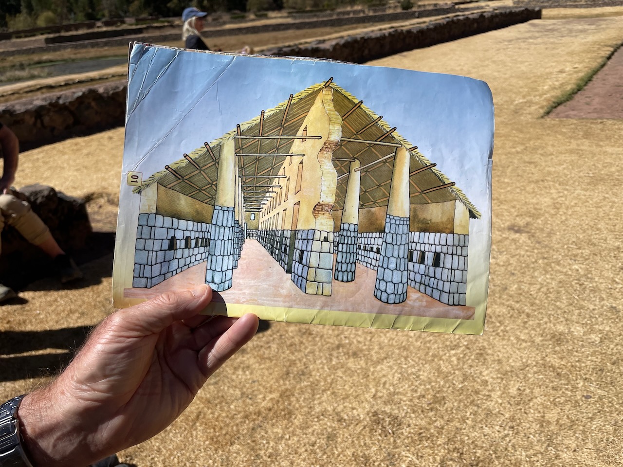 Prior to its destruction by the Spaniards, the temple had what is believed to be the largest single gable roof in the Incan Empire, having its peak at the central wall, then stretching over the columns and some 82 feet beyond on each side. The huge proportions of the Raqch’i temple, and its prominence on the site explain why the whole complex is also sometimes referred to as the Temple of Wiracocha.