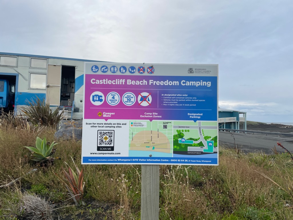 After dinner we all walked down to Castlecliff Beach as rain clouds threatened to open up on us.  On the way we passed a parking lot designated as the Castlecliff Beach Freedom Camping area, where one can as the name implies, camp for free.  The city has established a few sites that support the concept, and they are governed by the Freedom Camping Bylaw which includes restrictions such as limiting how long people can freedom camp in certain areas, what vehicles they can use, how many nights one can stay, and how many vehicles can be freedom camping at any one time.