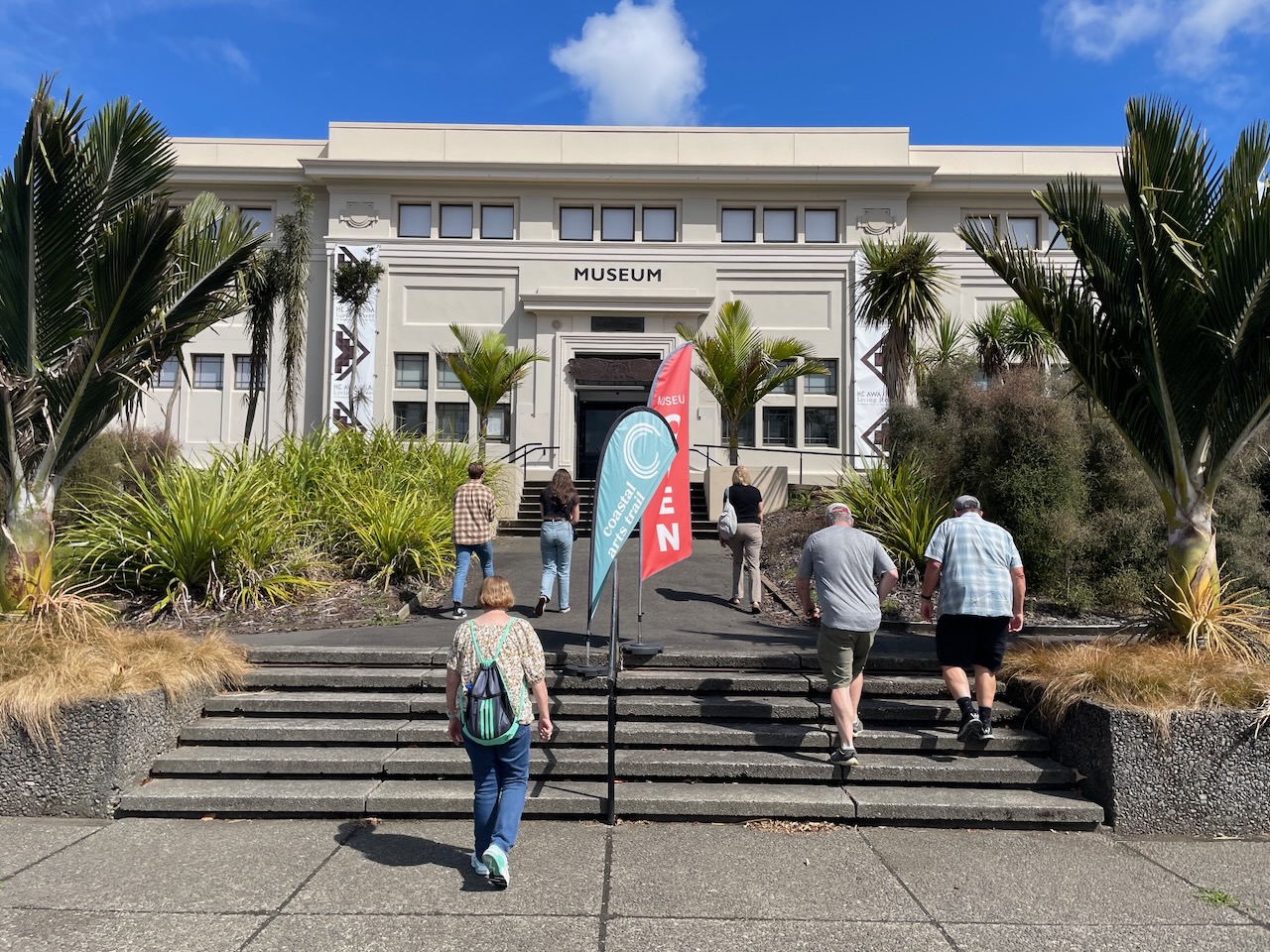 We parked and began walking down to the river where, it being a Saturday, was the site of a farmers’ market.  And after walking through the stalls and then pausing at the river, we made our way to a coffee house for a round of drinks and snacks to tide us over for the rest of the morning.  When we finished, the kids left us for other activities, and we drove to the Whanganui Regional Museum where we would spend an hour or two perusing the exhibits.