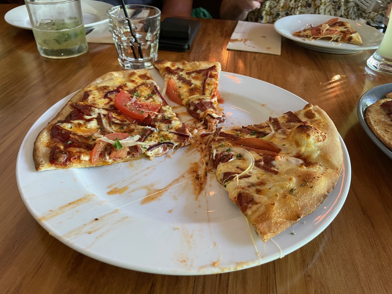 Sated, we all Ubered back to the house for some downtime before walking across the street for our dinner reservation at Lokal Kitchen and Bar, a meal we would enjoy enough to return during our stay. We’d start off with drinks, including a few Gin Smashes, and would eventually consume a Lokal Burger (9 hours house smoked beef brisket, bacon, cheese, tomato relish, caramelized onions, lettuce, slaw, and horseradish mayo) along with two pizzas, the first the Italian (tomato base, mozzarella, red onion, pepperoni, and oregano) and the BBQ Chicken (Mozzarella, bacon, smoked chicken, BBQ sauce, mushrooms, green capsicum, and jalapeno. We paid the tab of 157NZ ($102) and returned to the house for a quiet evening as we prepared for a Queensland Highlights tour the next day. And that would be the end of a nice first day in town.