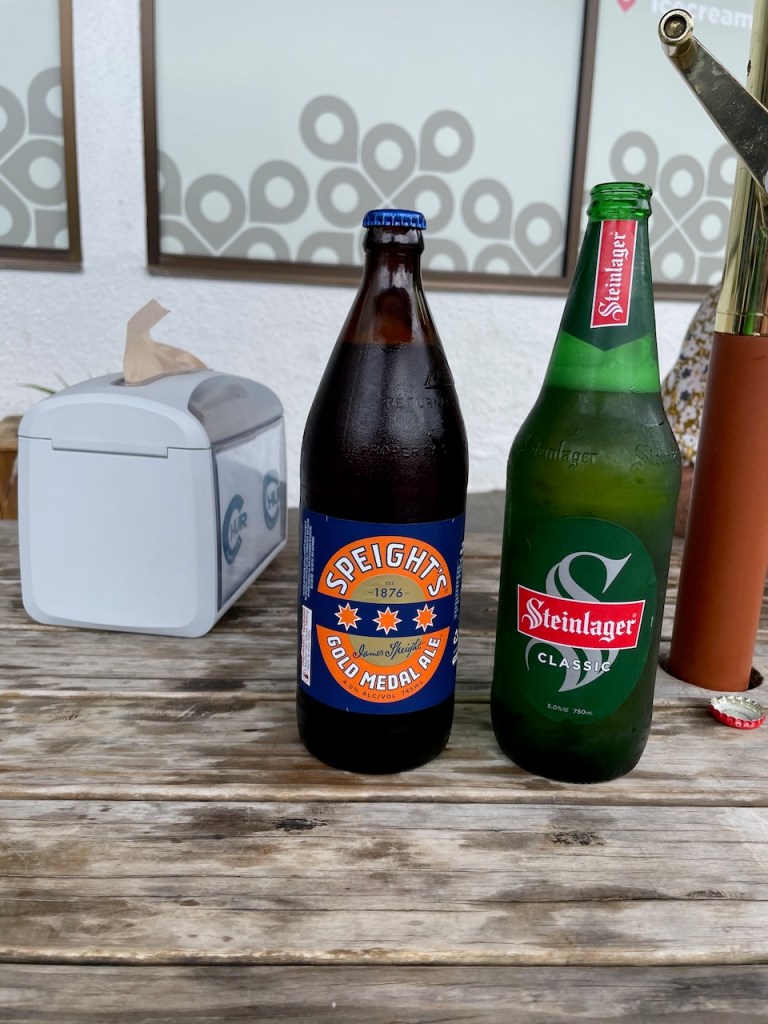 It having been a busy morning, lunch would be across the street at Chur Fish and Chips, where one orders on-line and picks up at the window. First, we placed our orders and then grabbed some beers from the market next door. By the time we’d had our first few sips of beer (especially a Steinlager, which is hard to find in the States) our order of Gurnard and chips was ready. Large enough for the two of us to share, the fish was firm and mild, the coating light but nicely structured to contain the fish and the chips, although larger than we prefer were perfectly suited for the occasion, especially when helped along with ketchup and that great Steinlager lager.