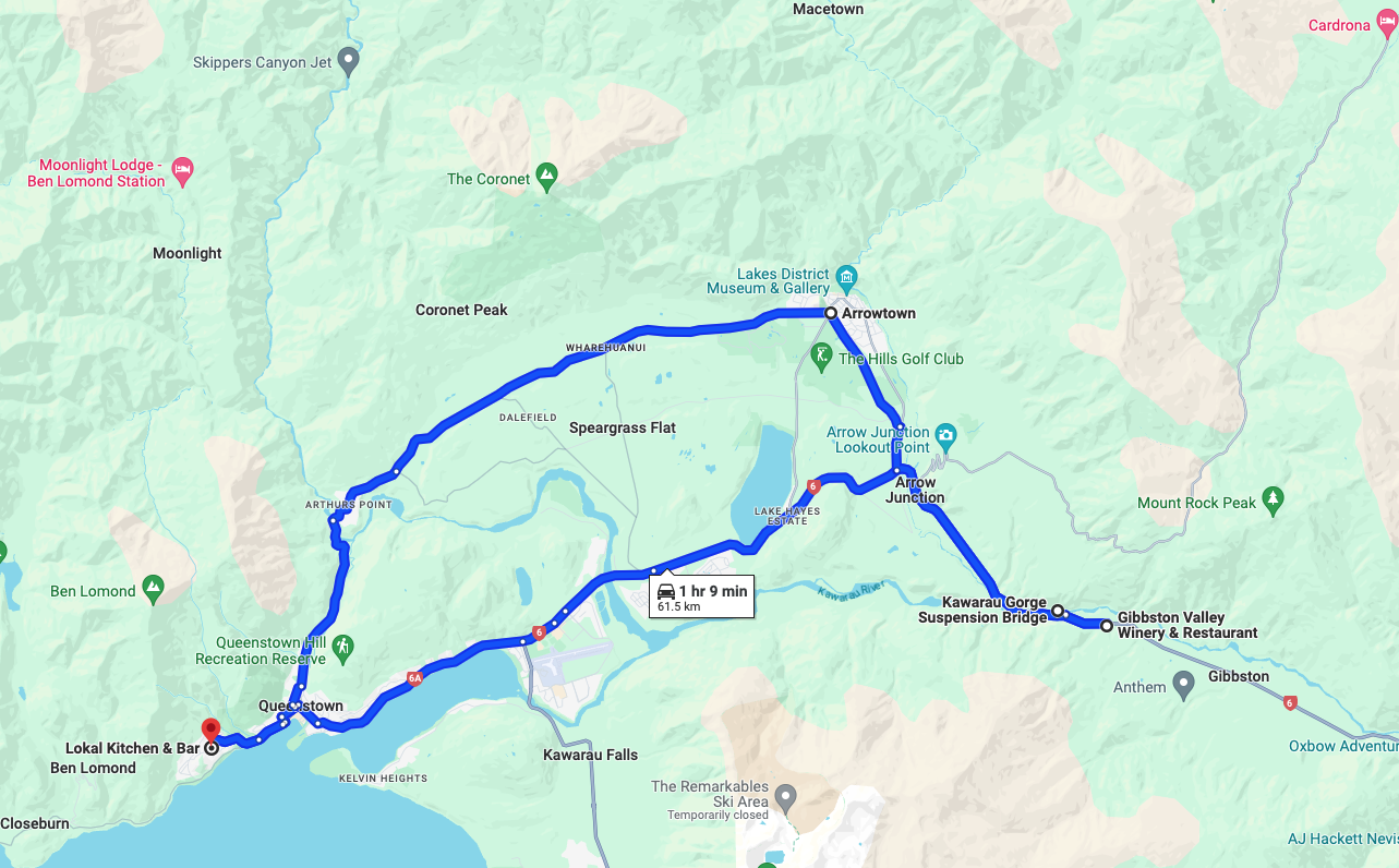 While the others walked up and down the main street, checking out the tourist-oriented shops, I popped into Wolf Coffee Roasters for a cup of joe and hung out there until we were all reunited, meaning they all got in line for a hit of caffeine. When finished, we returned to the van for the trip back to Queenstown and the house at Maha Peaks.