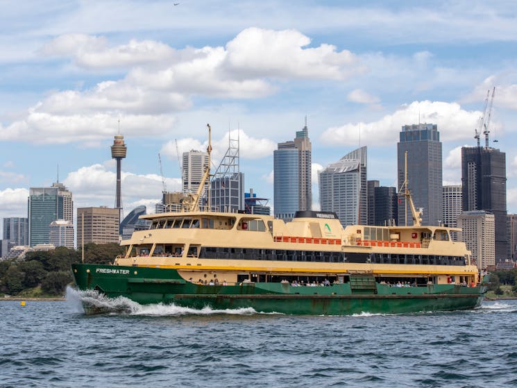 We finished the tour and thought about getting something to eat in the upscale restaurant inside the facility but were spared the expense as it wasn’t open yet, opting instead to nosh at the port side House Canteen located outside the venue on the ground floor. Bev, Joanna and I would split a ham sandwich, some Vegetable spring rolls with plum sauce, and some French fries. When we finished, we all made our way to the ferry building at Circular Quay to take the ferry to Manly Beach, a popular destination on a warm Sunday afternoon.