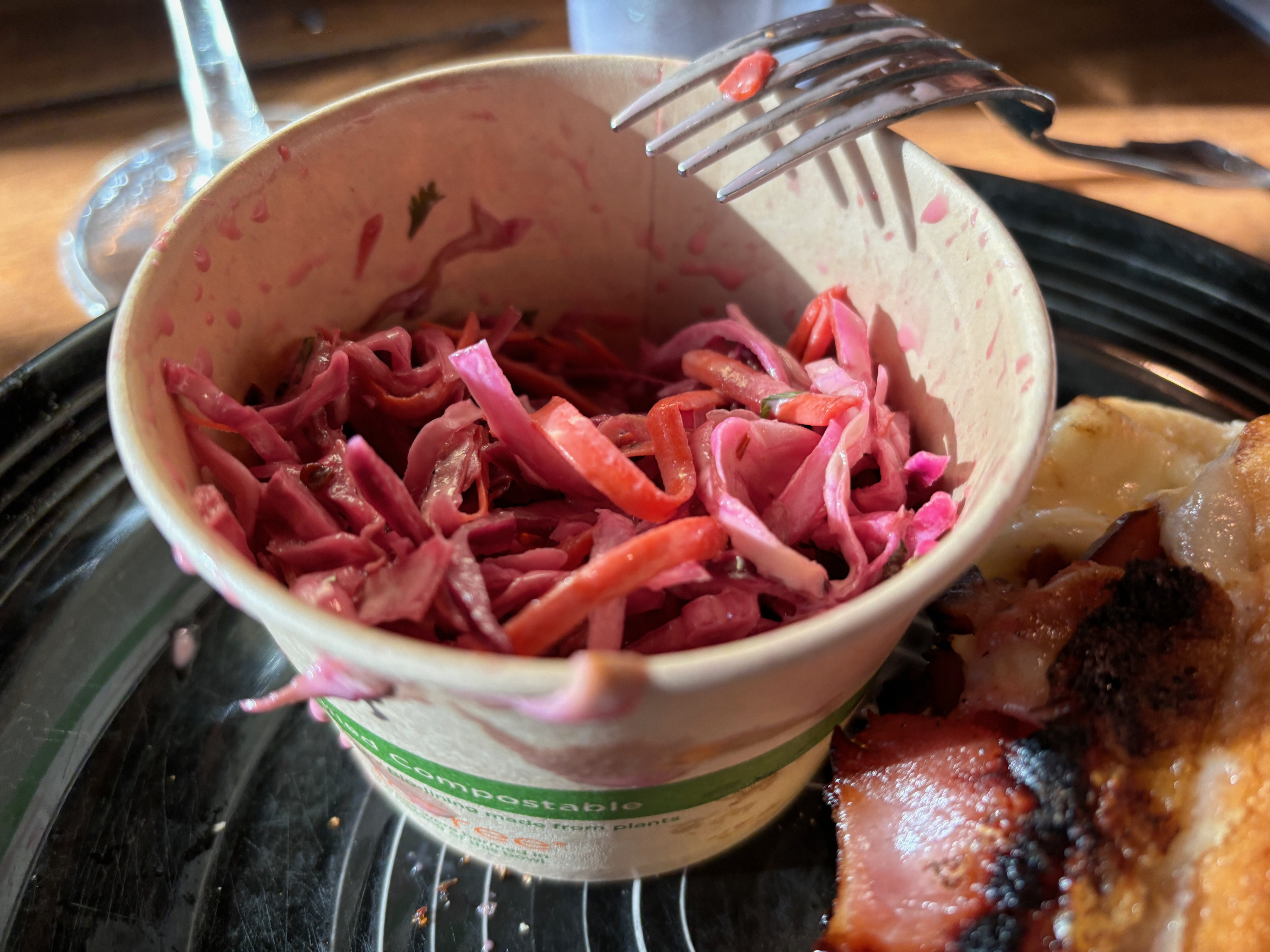 To eat, we went for the Cubano in Ojai (slow braised pork, honey cured ham, roasted garlic, Swiss cheese, dill pickles and spicey brown mustard on a fresh baked hoagie roll) with a side of Cole slaw, an incredibly good version of this sandwich, a type of which we have consumed many, most disappointing. This one though restored our faith in the genre.