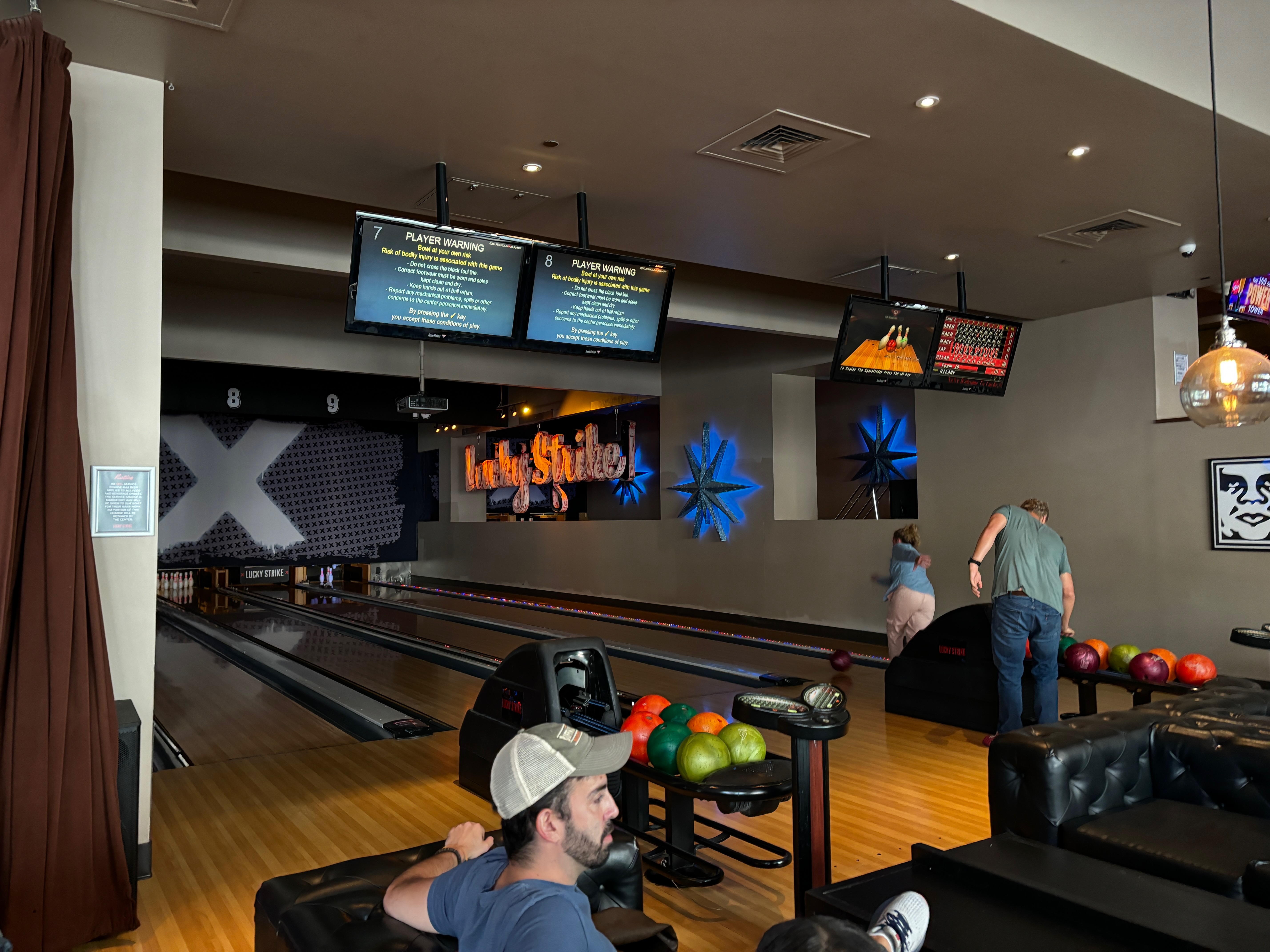 We returned home for four nights, closing them out with dinner at Pacos, our favorite L.A. Mexican joint and then hit the road Friday morning for the drive to Oakland. After unloading the car and setting up shop at the house, we all piled into the Highlander for a ride across the bay to San Francisco for a fun night at the Lucky Strike Lanes a bowling alley chain owned and operated by the Bowlero Corportation.