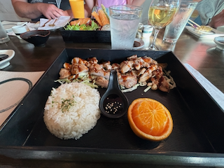 We made the eight-hour drive back to Oakland the next day, stopping for lunch at a Baskin Robbins in Redding so dinner that night at Hashi Gawa was just what the doctor ordered. Jessica, Kris, and Joanna all enjoyed a number of items of sushi while Gemma did damage to a Bento Box, and I had the Chicken Teriyaki. It was all good and reasonably priced, a gem of a spot in Alameda.