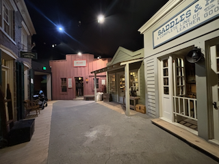 One of the highlights for me is a series of displays that depict Native American life on the land before the white man, a trapper’s camp, survey party’s camp, pioneer wagon train, a mining claim, and an early 1860s town complete with blacksmith shop, Chinese mercantile, and stagecoach stop. I hung out inside while the others went outside to watch a demonstration that included some of the museum’s raptors and came back raving about it, so I was sorry I missed it.