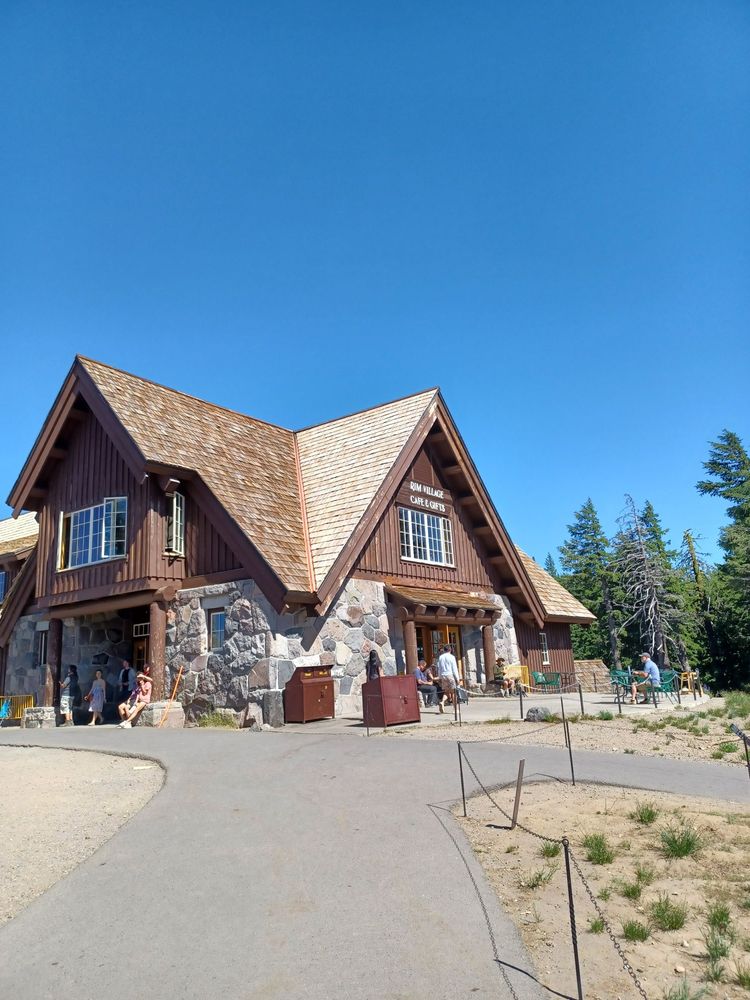 We drove into the park hoping to get to the main lodge for its great view of the lake but instead our GPS guided us to Rim Village and the Café and small market there. Joanna got into the queue and ordered us what would turn out to be a very good pulled pork BBQ sandwich that proved to be quite good. We all took our food upstairs to a second-floor dining area and marveled at what little of the lake we could see from that vantage point.