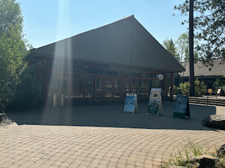 After the museum we drove to the Old Mill District, an historic area formerly occupied by two lumber mills that encompasses approximately 270 acres along the Deschutes River, and is now a mixed-use area known for its shops, galleries and restaurants. We walked the length of it, hit the REI there for a few moments and then while the girls checked out the Anthropologie store, Chuck and I grabbed a seat at the bar of the Confluence Fly Shop & Craft Beer Bar to enjoy a draft beer for him and a can of pretty good Chardonnay for me.