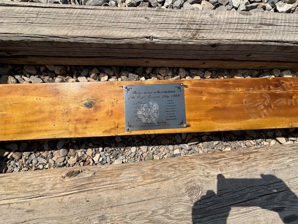 Joanna is really good at spotting interesting places for us to visit and she found one that first day, a stop at the Golden Spike National Historic Park in Box Elder County, Utah. The site commemorates the completion of the first Transcontinental Railroad where the Central Pacific Railroad and the Union Pacific Railroad met on May 10, 1869, at Promontory Summit. The final joining of the rails spanning the continent was signified by the driving of a ceremonial golden spike. The spike is now displayed in the Cantor Arts Center at Stanford University.