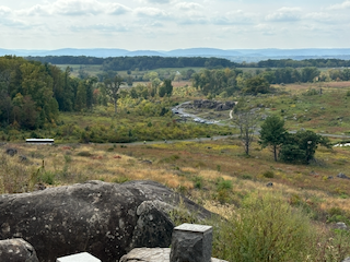 Soon it was time for us to join our guided tour of the battlefield, which would take about 90 minutes and hit a number of the critical spots of the battle, culminating with a stop at the top of Cemetery Ridge where General Pickett and his 12,000 Confederates troops attacked the center of the Union line at in what is known as Pickett’s Charge. The Confederate charge was repelled by Union rifle and artillery fire, leading to great Confederate losses. The following day, on the Fourth of July, Lee led his Confederate troops on the torturous retreat from the North. Between 46,000 and 51,000 soldiers from both armies were casualties in the three-day battle, representing the deadliest battle in U.S. history.