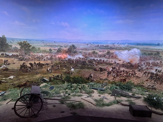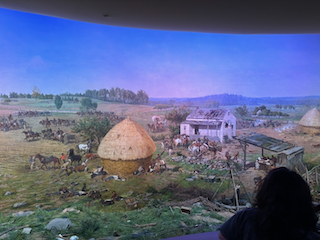The park totals 3,785 acres and officially came under federal control on February 11, 1895. We’d signed up for a guided tour of the battlefield for the afternoon and our museum pass included a presentation of the famed Cyclorama, which was the first thing we made our way to upon arriving in the late morning after the hour drive up from the Airbnb. The Cyclorama (a type of 360° cylindrical painting) by the French artist Paul Philippoteaux depicts Pickett’s Charge, the climactic Confederate attack on Union forces.
