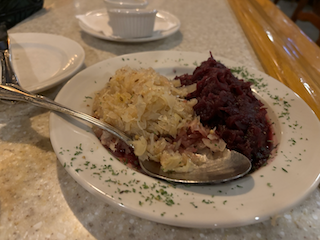Of course, we ordered beers to start, a Berliner Weisse for Joanna and a draft Bitburger for me. I’d later follow up with a Hofbrau House Helles, one of my favorite styles of German lagers. The food was everything we could have asked for and we did a lot of damage to the large portions set before us. Knowing we had a cooler with us and a microwave back at the house we took the leftovers with us as well as an order of the Apfel Strudel (Apple Strudel served warm with vanilla sauce) to enjoy later. It was all incredibly good and for a few moments, we felt like we were back in Munich, one of our favorite cities to visit. We’ll leave it there and pick it in our next post.