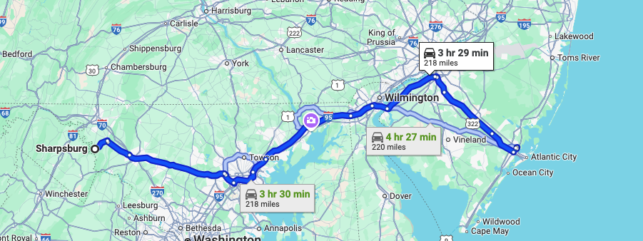 Our drive the next day would just be four hours, which was good as we needed a late checkout from the Airbnb as I had a video call with my surgeon for the three month follow up on my hip. He was happy with my progress and released me from the restrictions that come with the operation (no bending past 90 degrees, no leg crossing, etc.) and so, car loaded, we were soon on our way to Absecon, New Jersey to visit with Joanna’s good friend Janet.