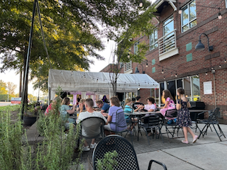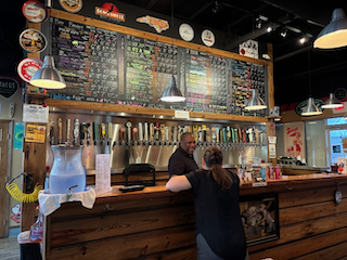 With Nicole busy that night, we set out for nearby to Growler Grlz, a long-established tap room we’ve frequented a number of times, appreciating as we do its welcoming environment and extensive selection of draft beers. An added bonus is they are next to Randy’s Pizza, where we’ve enjoyed many memorable pies. Sipping on our first round, we engaged in conversation with a couple from the area that had recently moved to the beach and then went outside in the warm night air to listen to a band warming up.