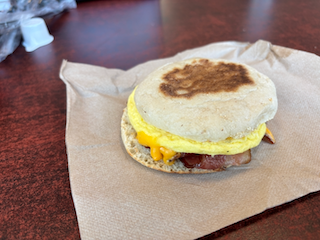 To fortify ourselves for the long day, we decided to return to Sweet Dough for another healthy helping of decadent baked goods, only to find that we arrived before they opened. Fortunately for us, there was a local outlet of the east coast chain Duck Donuts and so we dropped in for two different breakfast sandwiches, a sausage egg and cheese donut with chopped bacon and maple drizzle and a bacon, egg and cheese on an English muffin. Washed down with a nicely brewed large cup of coffee it would easily sustain us as we went about our errands.