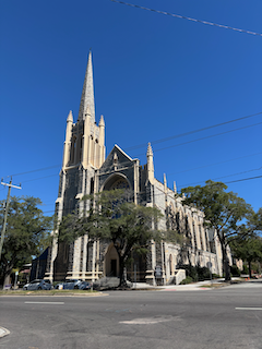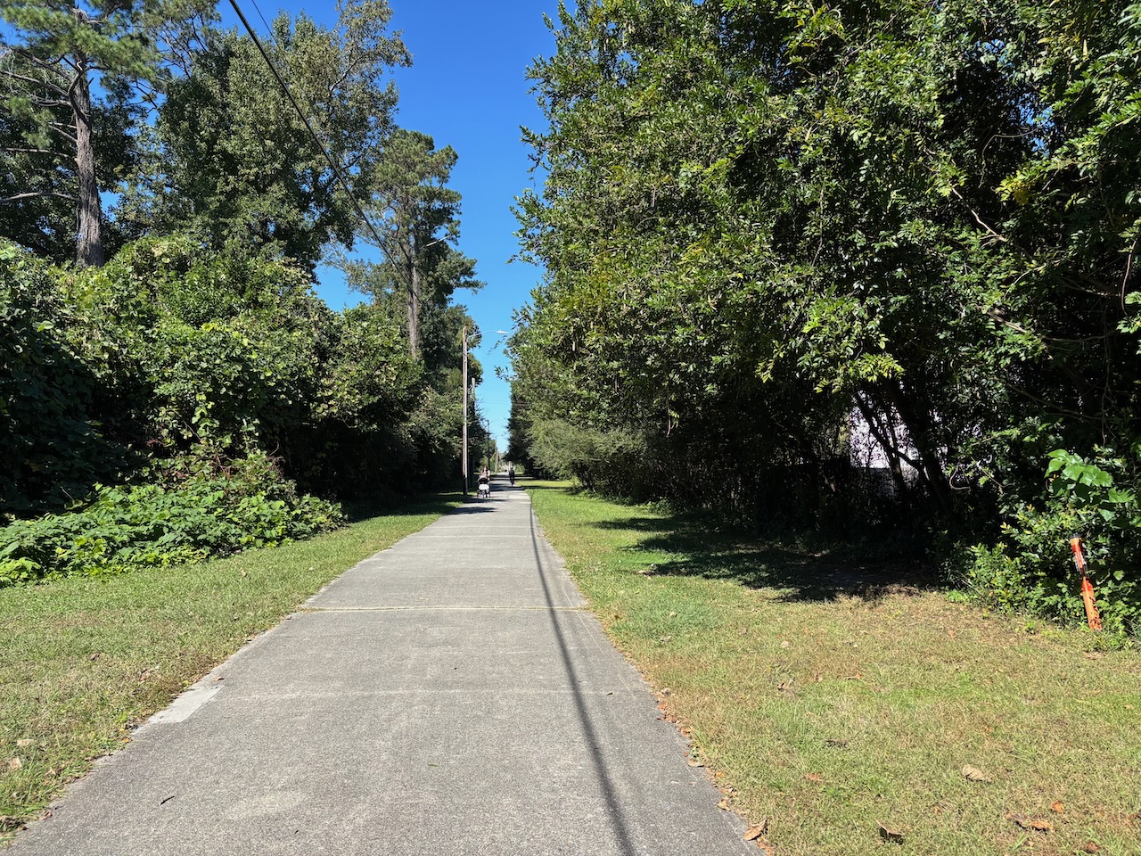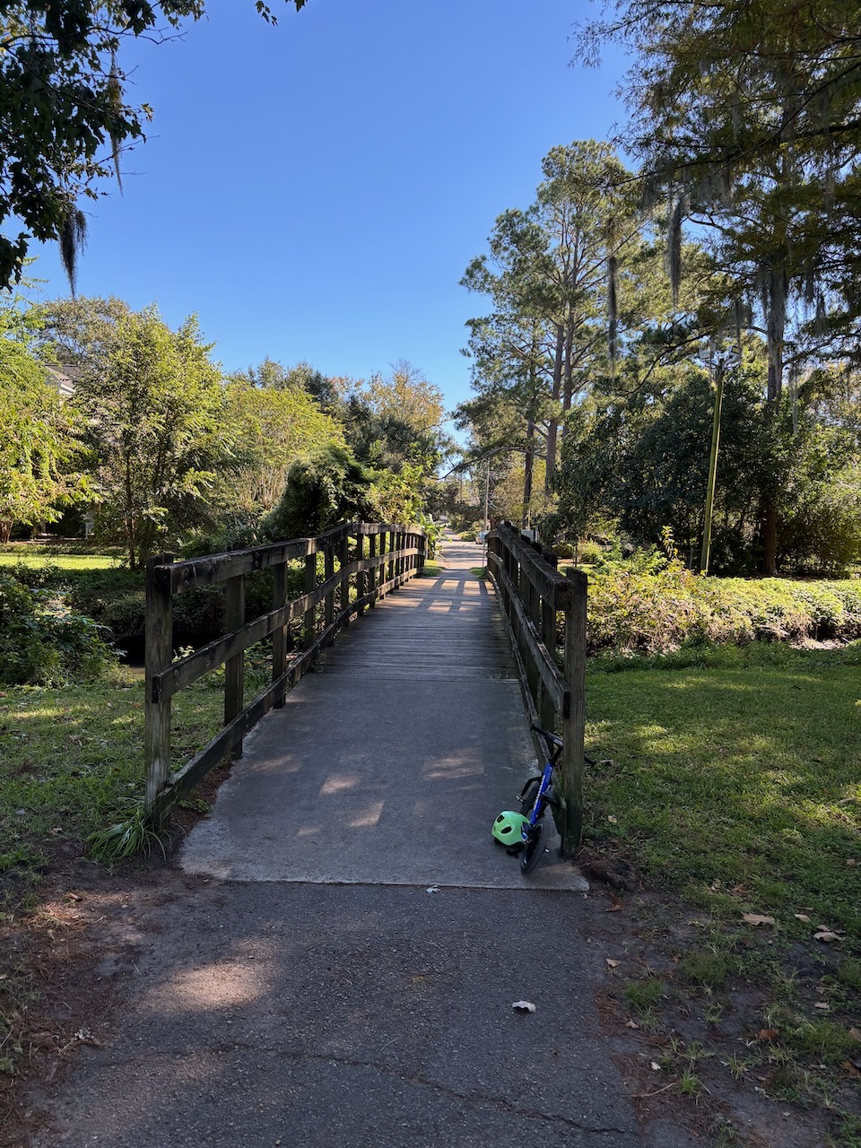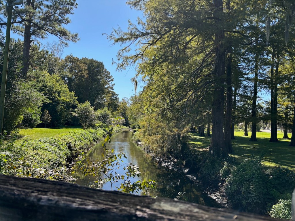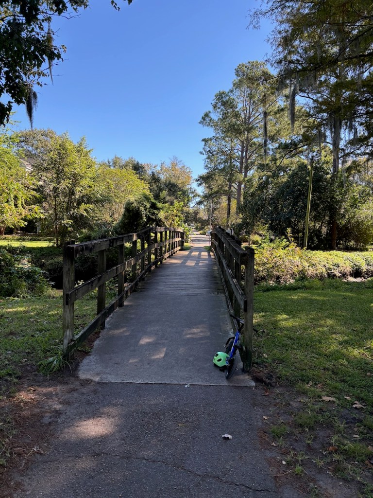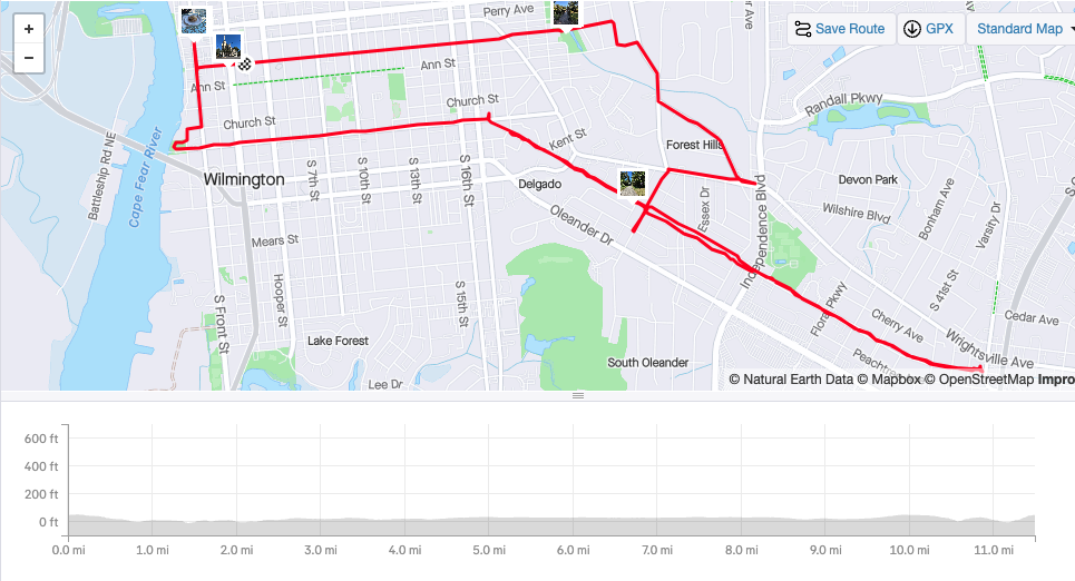The next day was open for us, and we took advantage of it to get a nice bike ride in. Having checked online, there was supposed to be a dedicated bike path that started and ended in downtown Wilmington close to the Cape Fear River. We drove there (Carolyn lives about twelve miles from downtown) and found a place to park, setting out on the bikes. It soon became apparent that no well marked path exists, or at least we couldn’t find it.