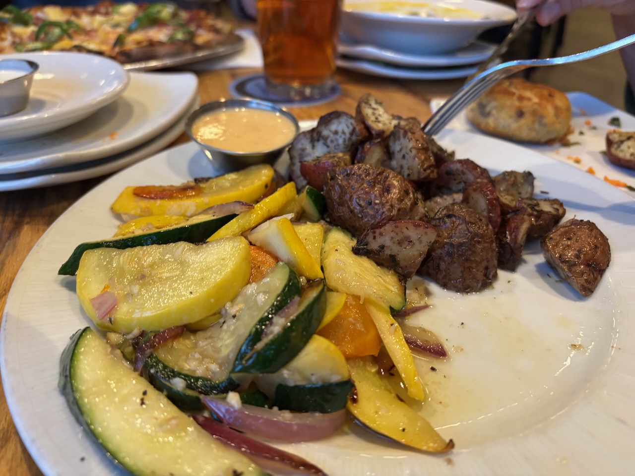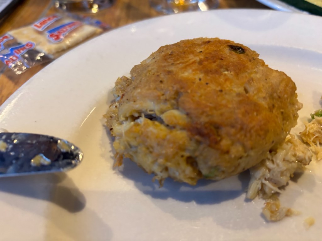 Next up was a Jamaican Ginger Soda for Joanna while I moved on to the Wobbly Wave Double IPA to go along with the Crab Cake Dinner (A duo of house-made lump Carolina crab cakes served with home style potatoes and sauteed vegetables, and Rasta sauce) we shared. Normally small appetite eaters, we demolished it all and walked out with a reasonable tab of $75. A small price to pay for good food and good friends who we’d be missing if we still lived in Charlotte.