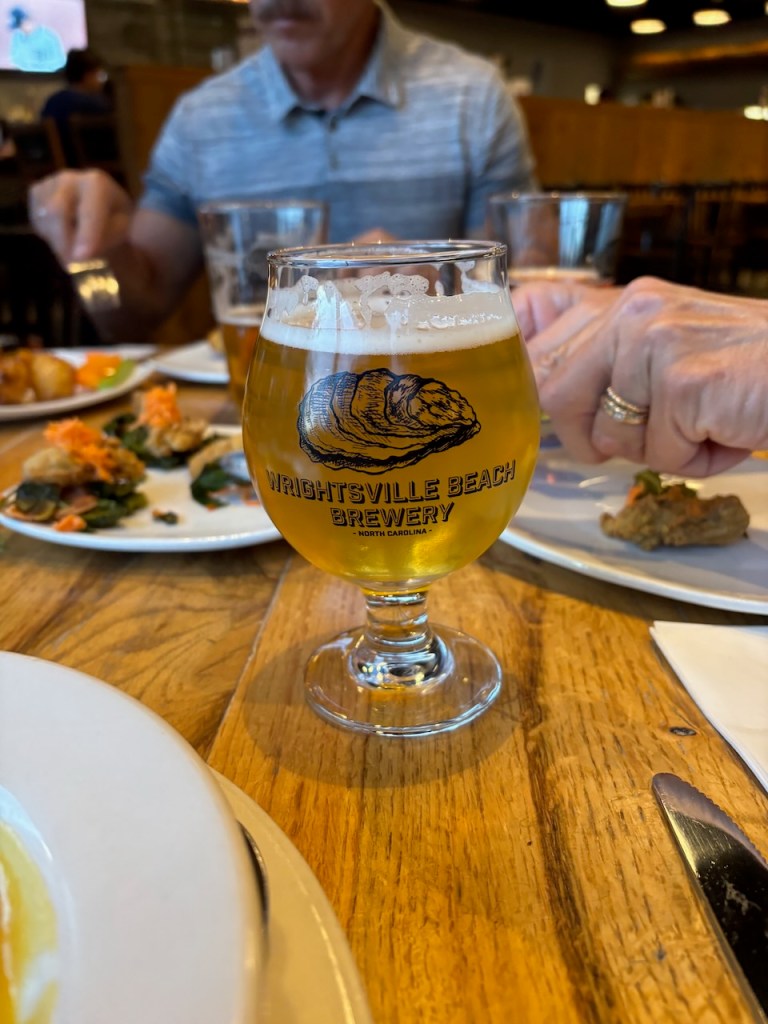 We made a quick stop to drop Bonnie off at her place and then headed north for the 90-minute drive to the Wrightsville Beach Brewery (Wilmington) for dinner with Linda and Joe, who we’ve known since our early days at the Charlotte house we bought in 2009. Linda and I both served for many years on the Board of Directors of our HOA (I was the treasurer and later became the President), a seemingly thankless task that instead allowed us to get to know many of our neighbors much better than if we hadn’t been involved.