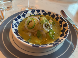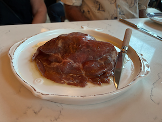 Joanna and I both enjoyed a glass of wine while we attacked our starter dish of Scallop Crudo (with passion fruit, avocado and finger lime). Shawn had us sample his Beef Carpaccio as well, which while it looked unappetizing, was anything but that. For entrees we went for broke, Joanna delighting in the Chicken Porchettato while I savored the Grilled Cherry Point Swordfish. We all shared bites of the Crispy Potatoes with Taleggio Fondue and finished with a unique Tiramisu.