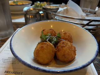 Just in time for our second round, Joanna and I, still a bit full of our breakfast, split the interesting sounding Fried Green Tomato Napoleon (Fried Green Vine Ripe Tomato, Goat Cheese, Pesto, Balsamic Reduction). It was a massive tower of fried goodness, and it took some doing to eat it without spreading it out on the table. It definitely did the job of soaking up the beer we consumed and sent us off, after a fond farewell to Susan and Shawn, to the Best Western where we managed to make it through the night without any mirrors breaking. We had a short drive to Jekyll Island scheduled for the next day so we were glad to catch a few moments of down time.