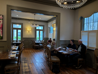 After some downtime and a glass of wine we drove twenty minutes to the Ashley River side of Charleston to Costa to meet Susan and Shawn for dinner. I’ve known these two for many years, meeting Susan through my regional involvement with ACUI when she worked at the University of San Diego and later when we served at the same time on ACUI’s Board of Trustees.
