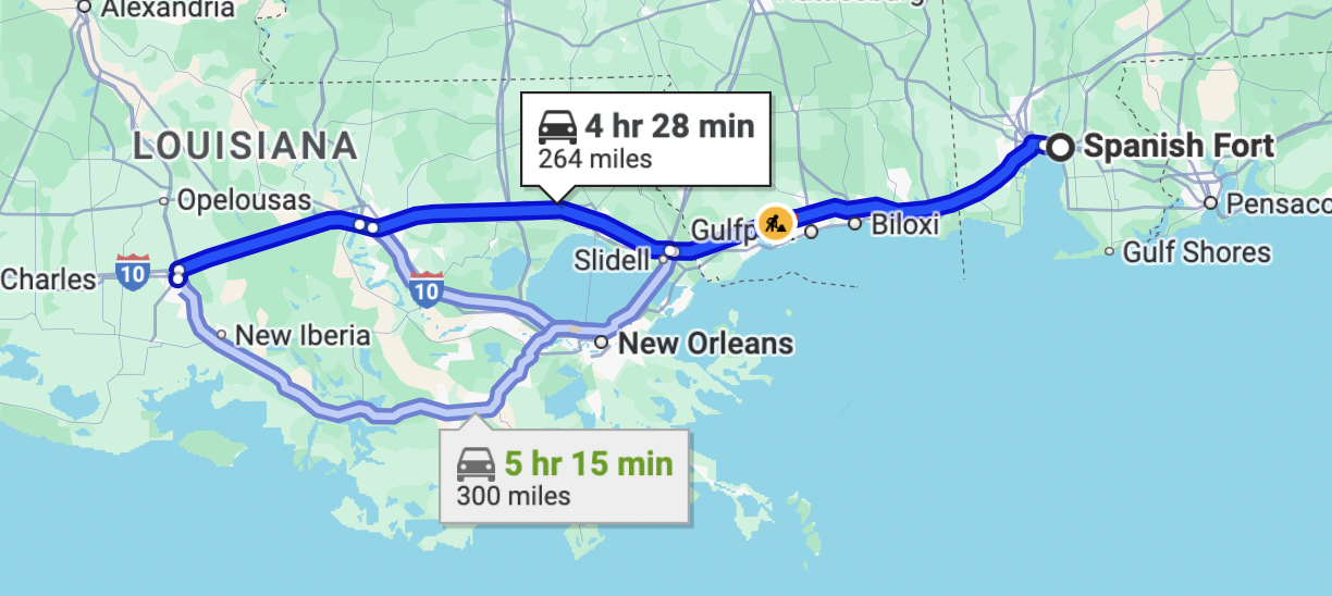 And that would be in downtown at La Carreta (an area that somehow eluded us during our stay), a decent Mexican operation not far from the house. There we would each get a large and tasty Happy Hour margarita for $7 apiece and split one order of fish tacos and a veggie quesadilla. The drinks were really good as was the food and the gigantic portion sizes meant we would have been better off only ordering one for the both of us. But all in all, it was a nice way to end our brief time in Lafayette closing out our tab at $58 including tax and tip. Our next stop would be Corpus Christi, a seven hour drive we’ve done before and figured it would be an easy one. Boy, were we wrong. So stay tuned for that one.
